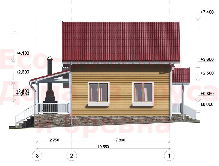 Проект двухэтажного дома Дом из клееного бруса с террасой и балконом. Проект Светово.