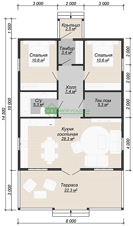 Проект одноэтажного дома ДБ-114