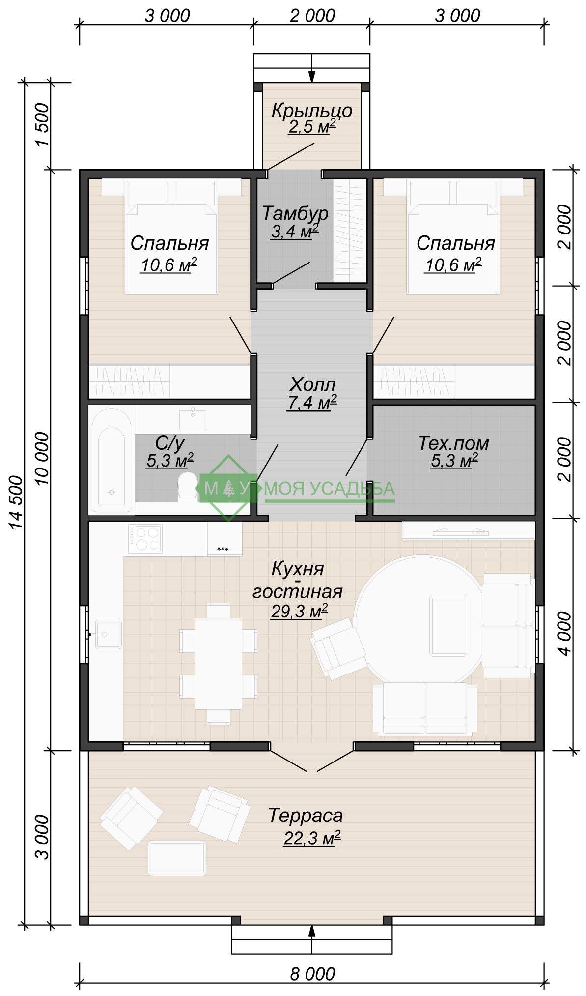 - Вынос свесов кровли по пириметру: 600мм