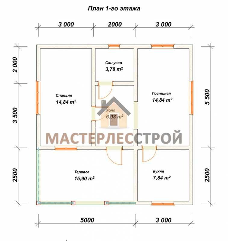 - Сруб из строганного бревна 1 и 2 этаж, средний диаметр 23-25 см;