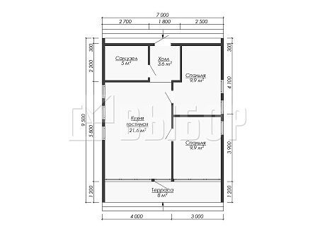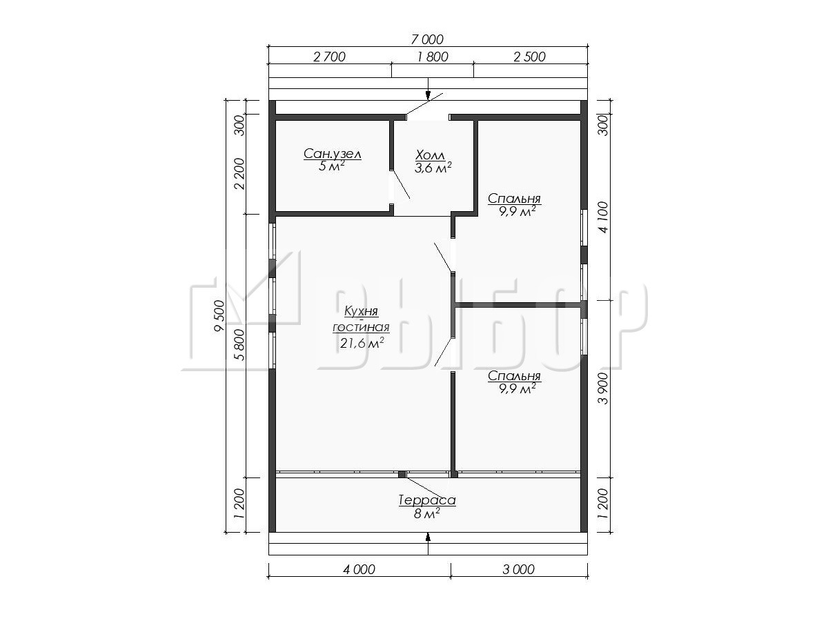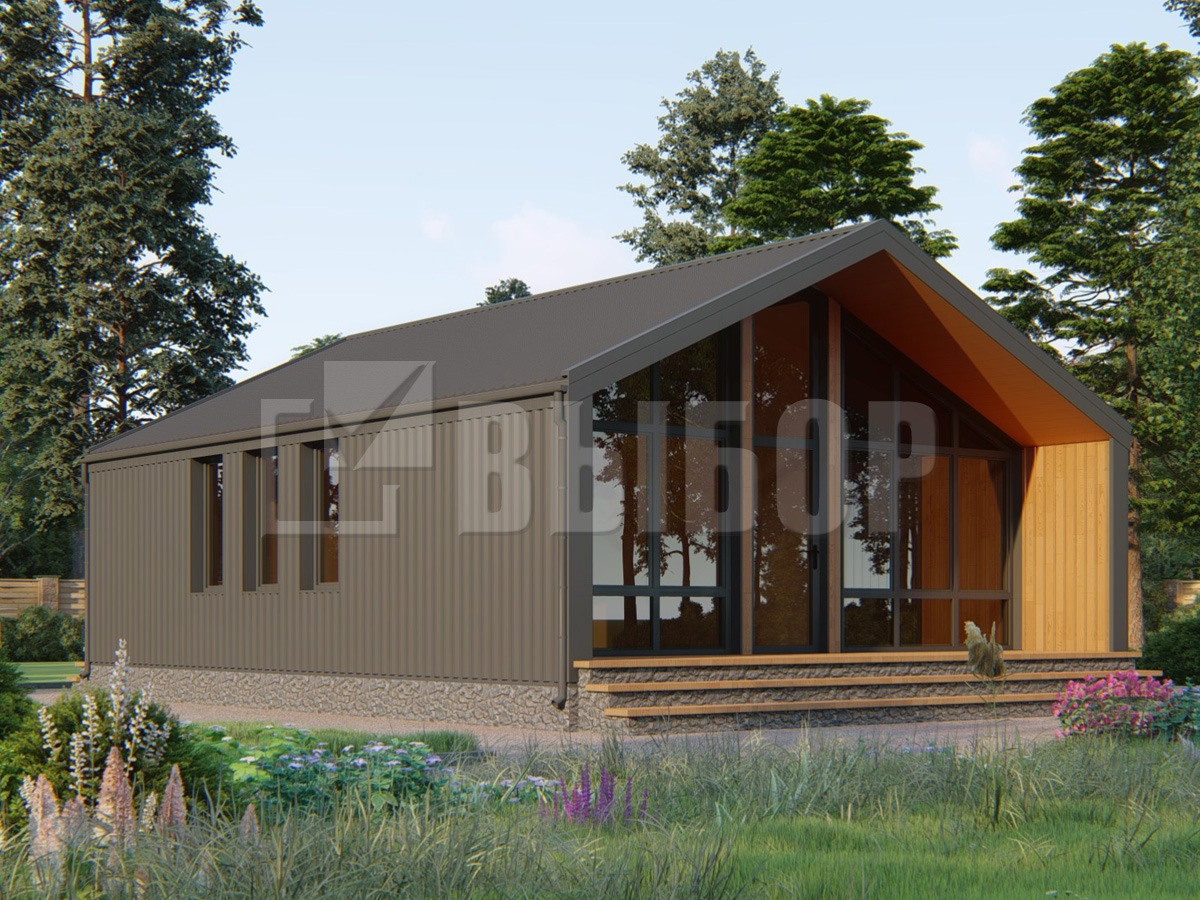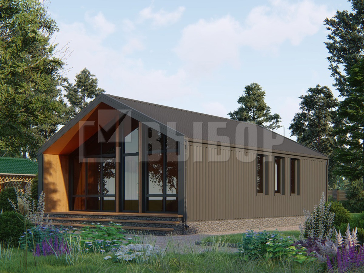 Проект одноэтажного дома 3051 - каркасный дом с плоской крышей с двумя спальнями