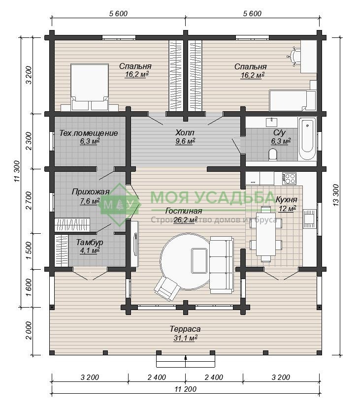 - Облицовочный материал фронтонов: Фронтоны из профилированного бруса 140х145мм