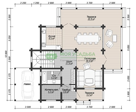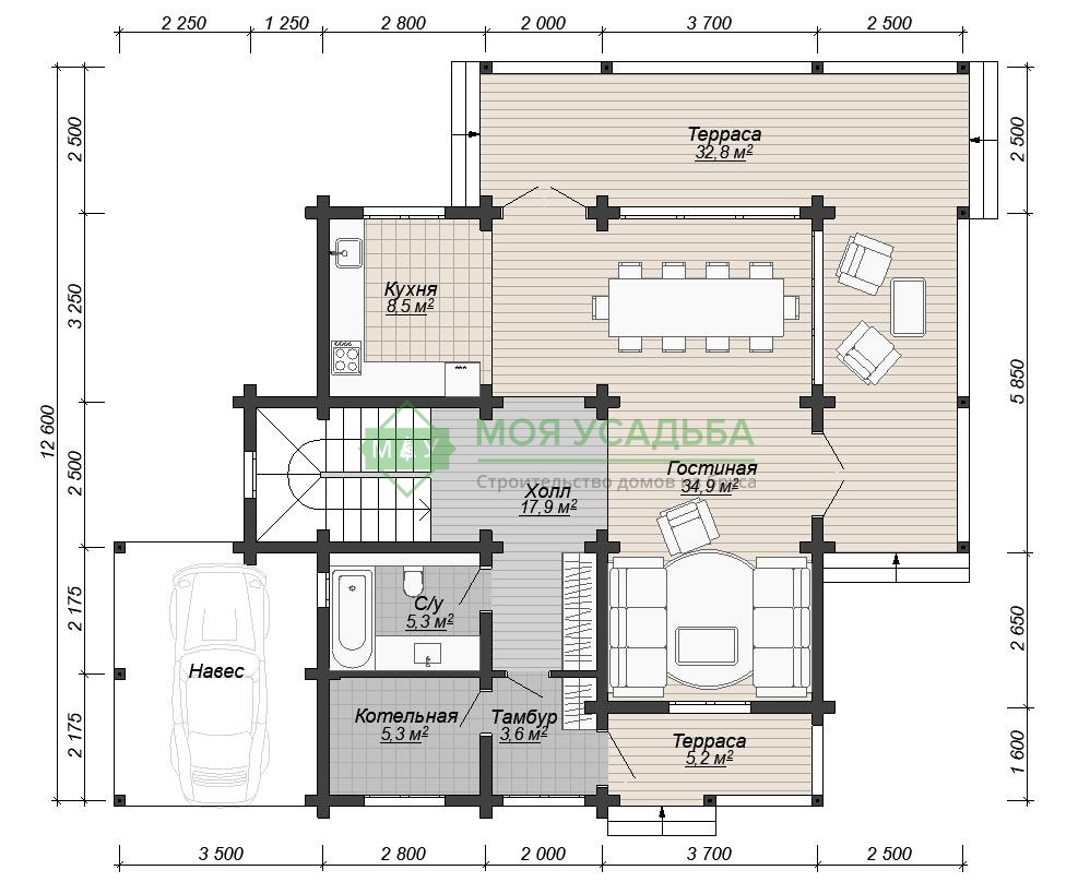 - Облицовочный материал фронтонов: Профилированный брус 140х140мм