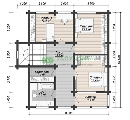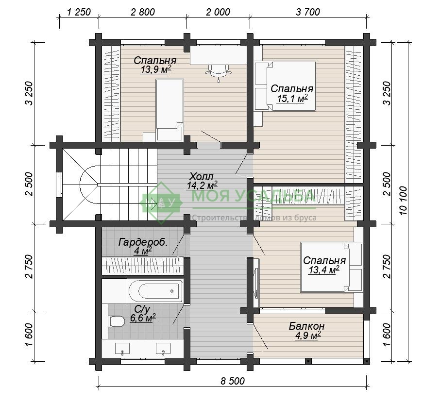 - Внутренние стены на первом и втором этаже: Профилированный брус 140х140мм