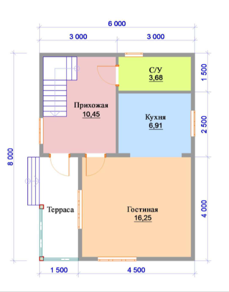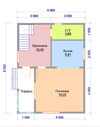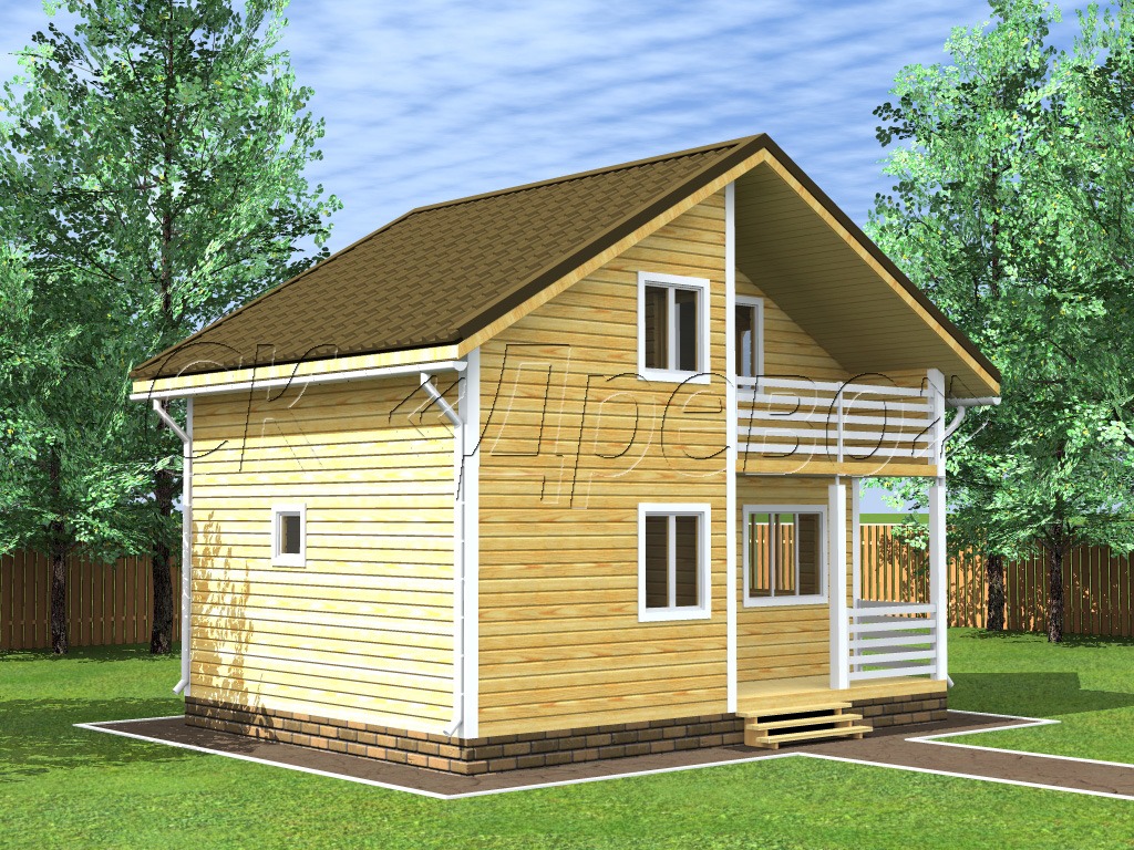 Проект двухэтажного дома Дом 6х8 м с мансардной крышей и кухней-гостиной