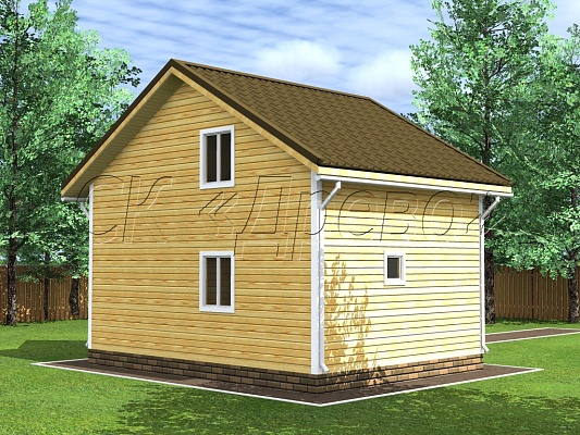Двухэтажный дом из бруса площадью 74 м² с жилой зоной 56 м² создан для семьи с одним ребенком. Две спальни и санузел обеспечивают комфорт и уют. Натуральные материалы дарят тепло и ощущение единения с природой. Отсутствие указанного фундамента компенсируется продуманной конструкцией.Характеристики