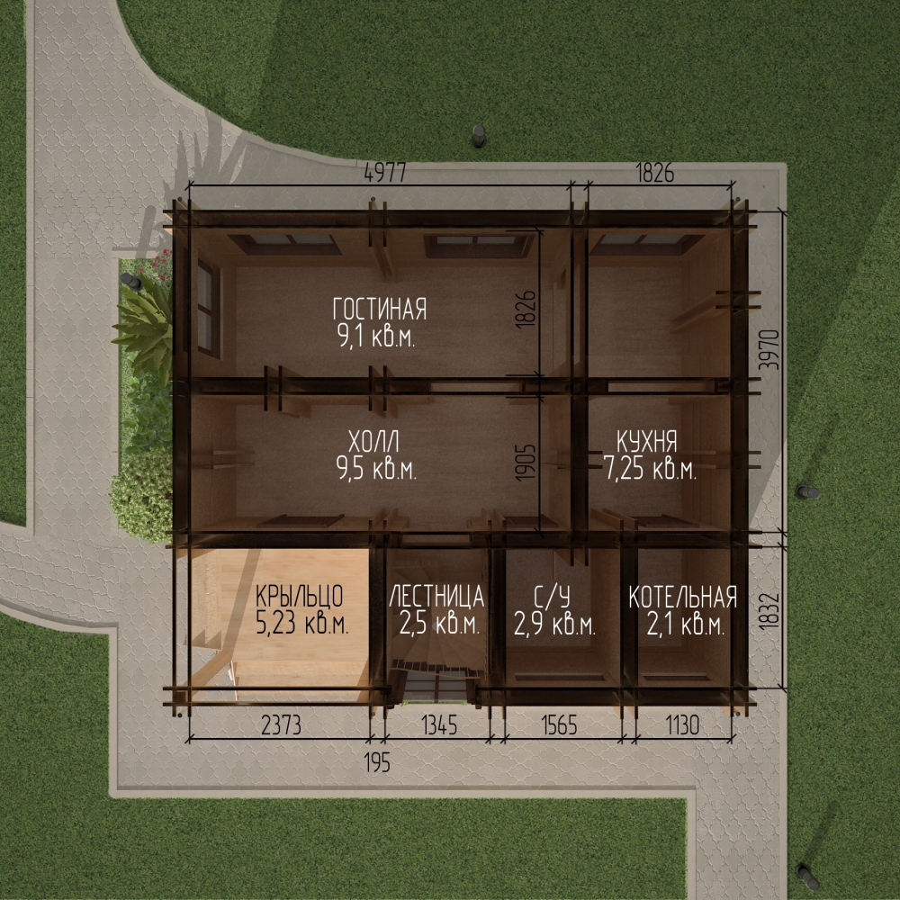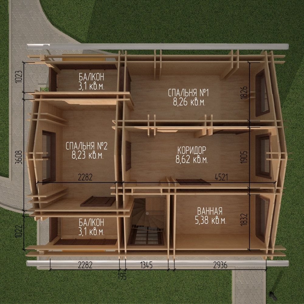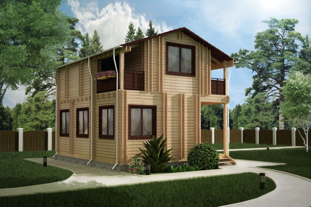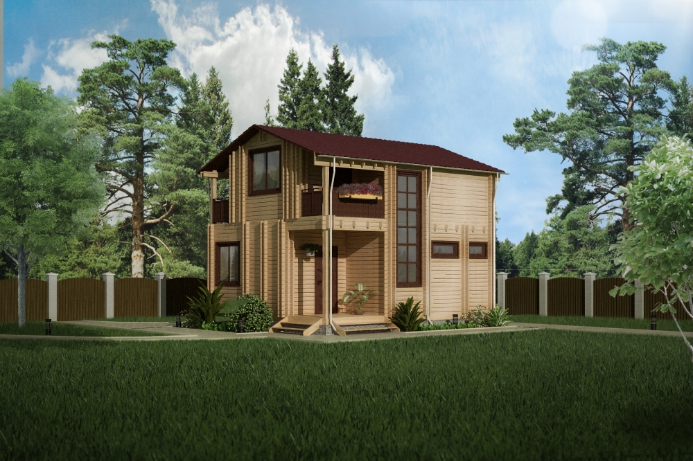 Дом, где терраса оборудована системой автоматического навеса. Планировка в пределах 75 м² подойдёт многим. Двухэтажная грамотная планировка делает зонирование более логичным. Брус делает дом надёжным при любой погоде. Крыша из ондулин подчёркивает современный облик дома.Характеристики