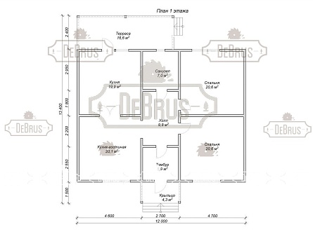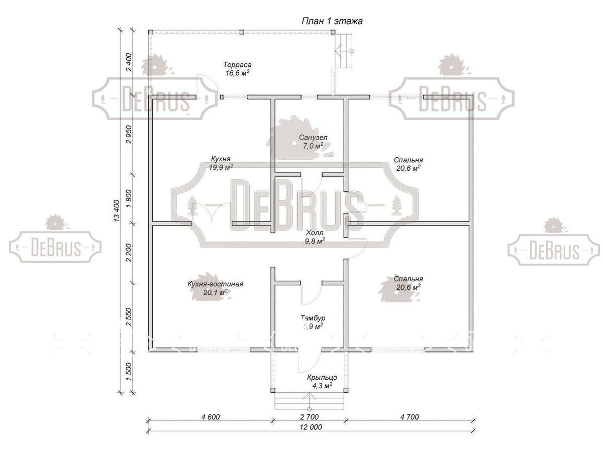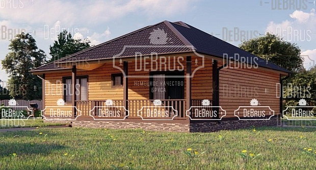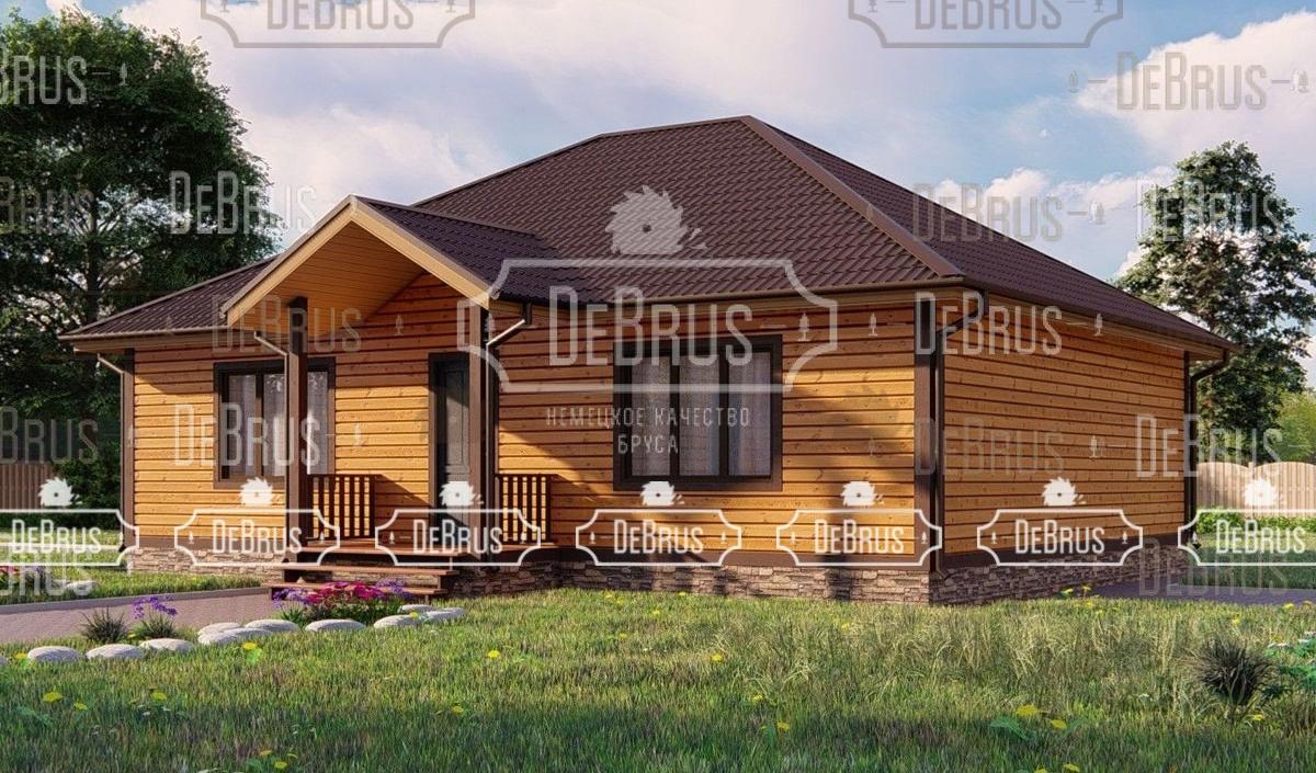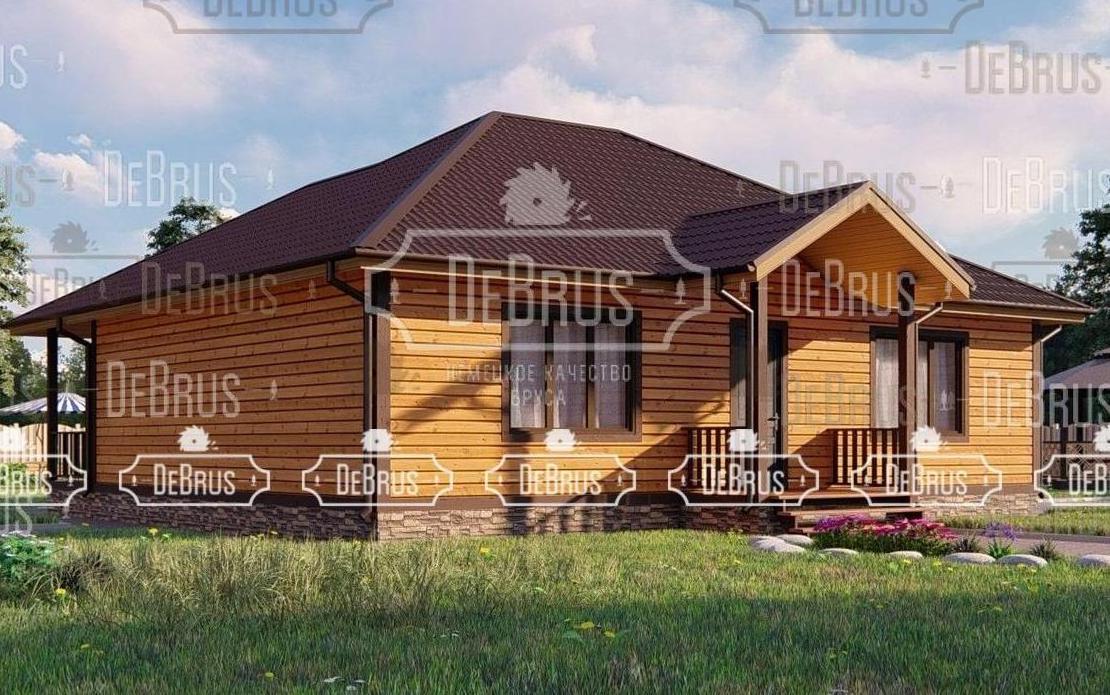Проект одноэтажного дома Шале из профилированного бруса 9.5 x 15 м.