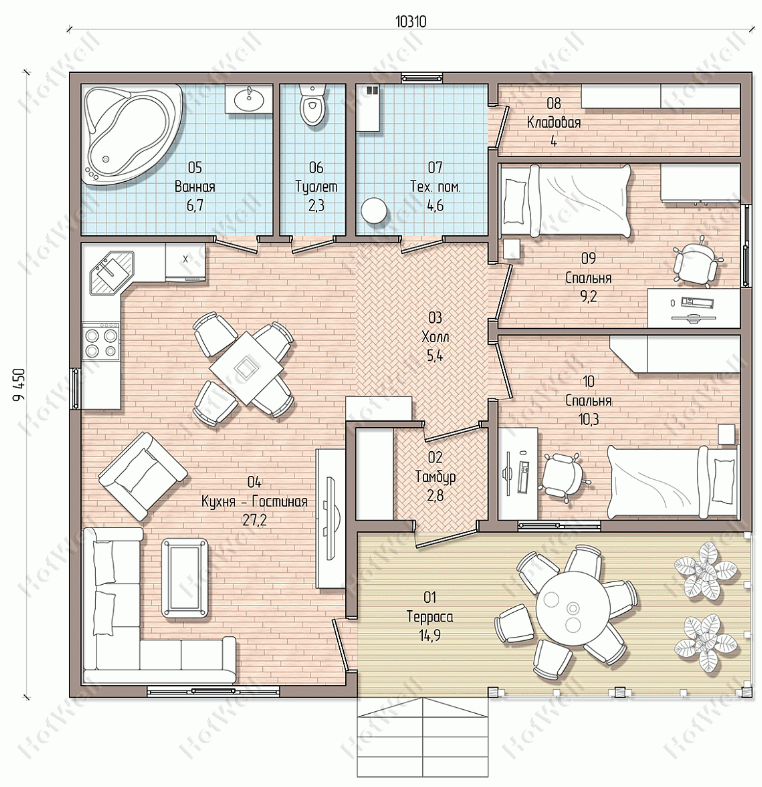 - Общая площадь: 97 м2