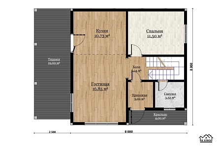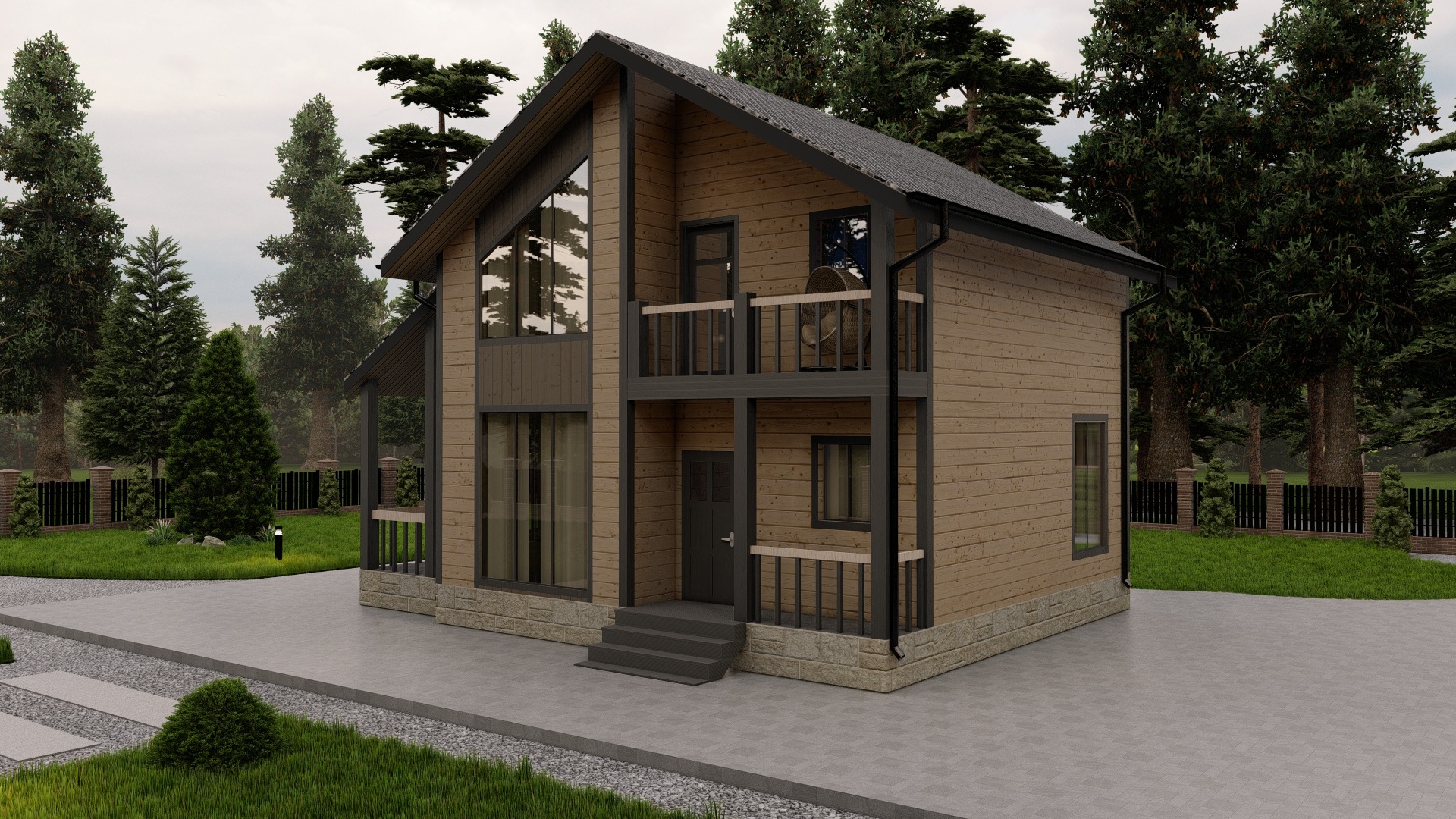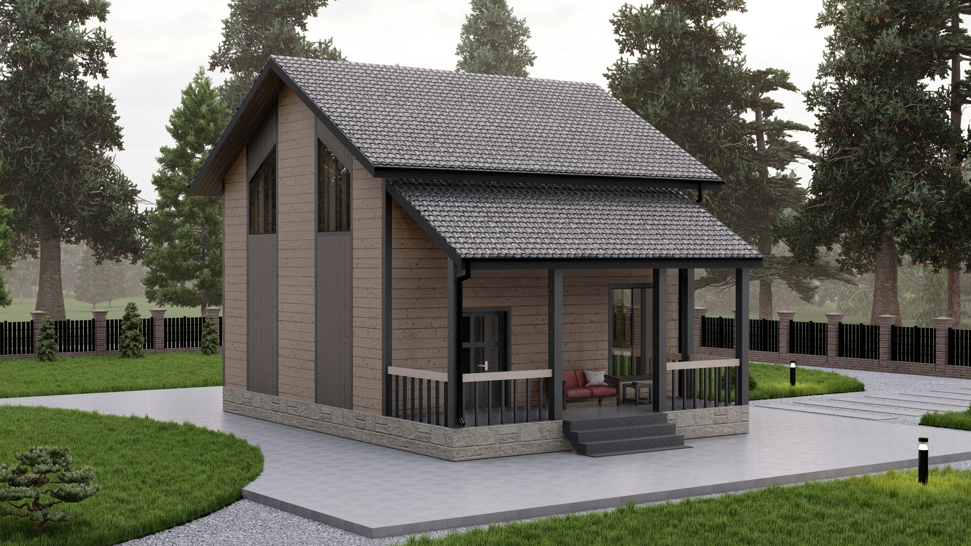 - Наружная отделка: Бруски 45 х 45 /50 х 50, Обшивка стен: фасадная плитка Hauberk от Технониколь, osb 9 мм