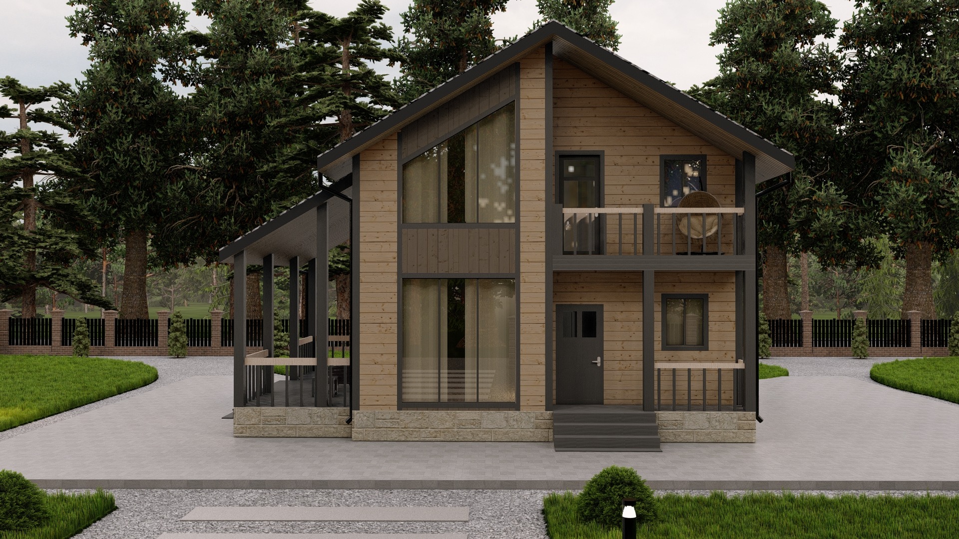 - Кровля: Металлочерепица 0,45 мм толщина, Полный комплект со всеми доборными элементами, Свесы крыши: пластиковые софиты, Отливы: металлические