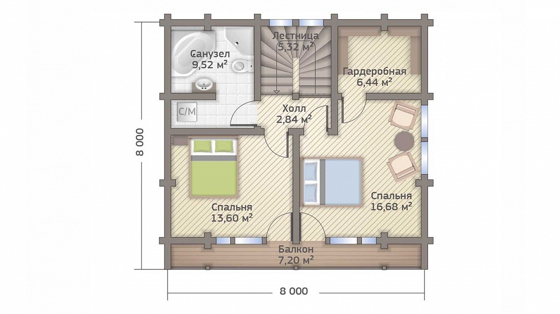 ДКБ-112 — дом из клееного бруса площадью 112 м² с жилыми 83 м², где современные технологии сочетаются с природной эстетикой. Просторные комнаты с панорамными окнами наполнены светом, а деревянные стены создают уют и тепло. Профнастил на крыше придает фасаду лаконичность, а продуманная планировка делает жизнь здесь удобной. Отличный выбор для семьи с одним ребенком.Характеристики