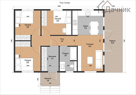 Проект одноэтажного дома Дом из бруса ДБ-63 проект Бюджетный