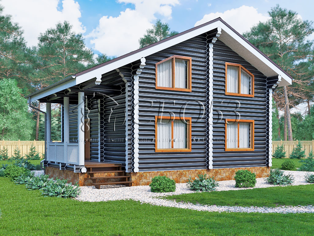 Проект двухэтажного дома Сруб дома 9х9 с мансардой (ломаная крыша)