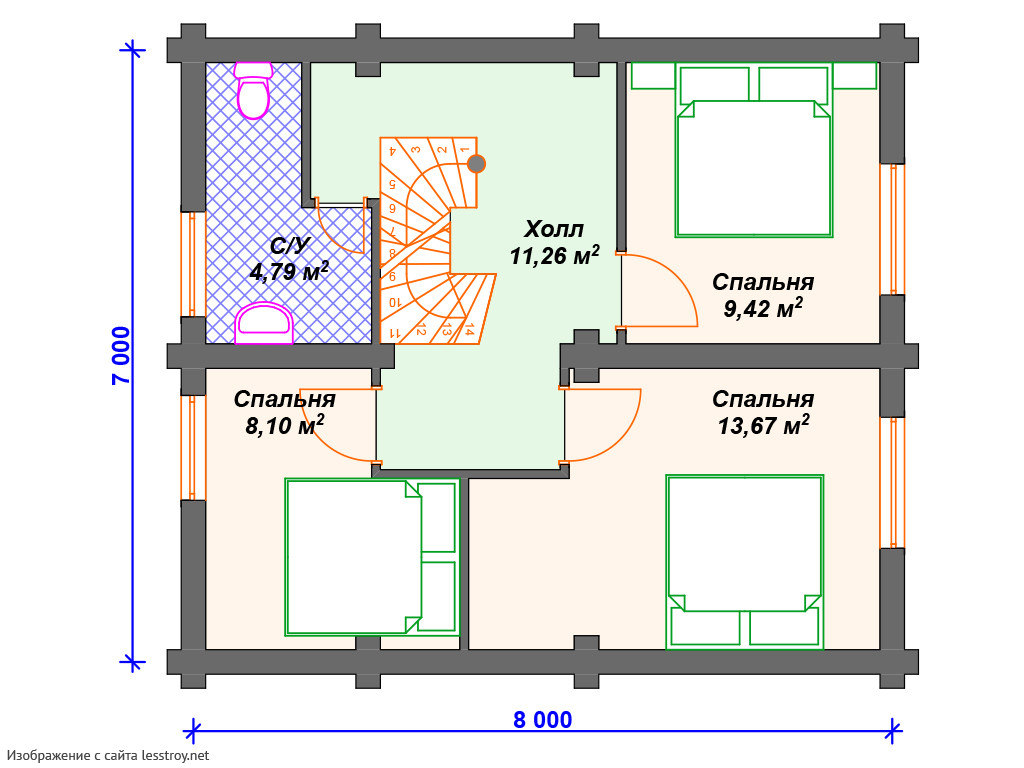 Проект двухэтажного дома ДО 024 Бревно 200 мм