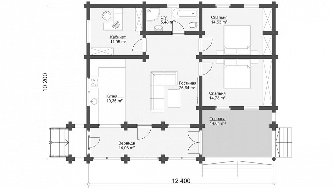 Проект одноэтажного дома Проект одноэтажного дома из клееного бруса Пятый угол -115