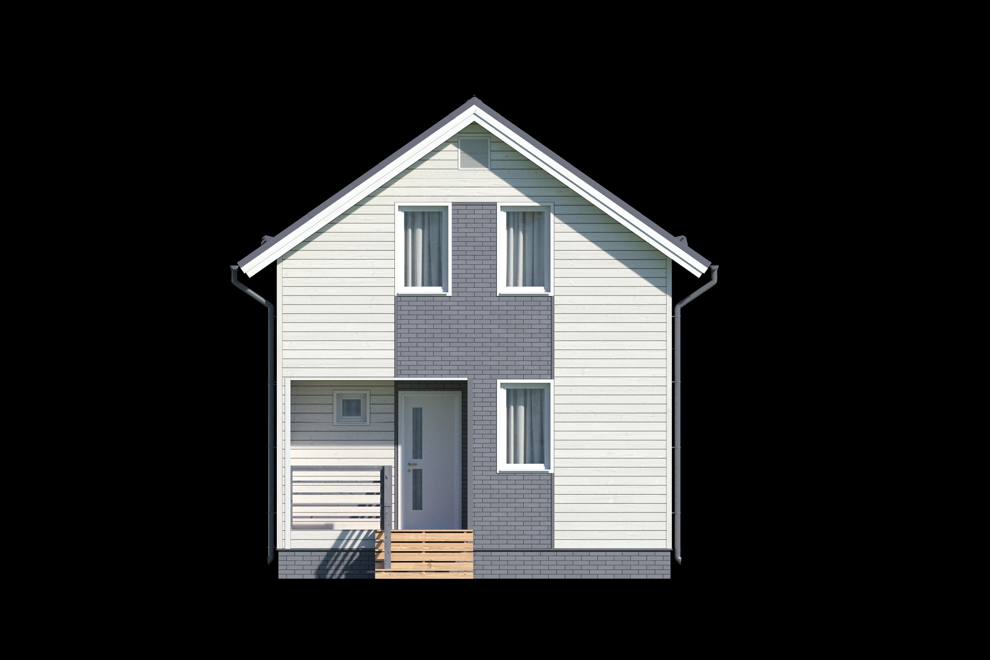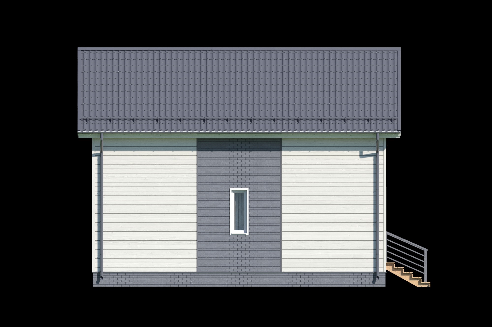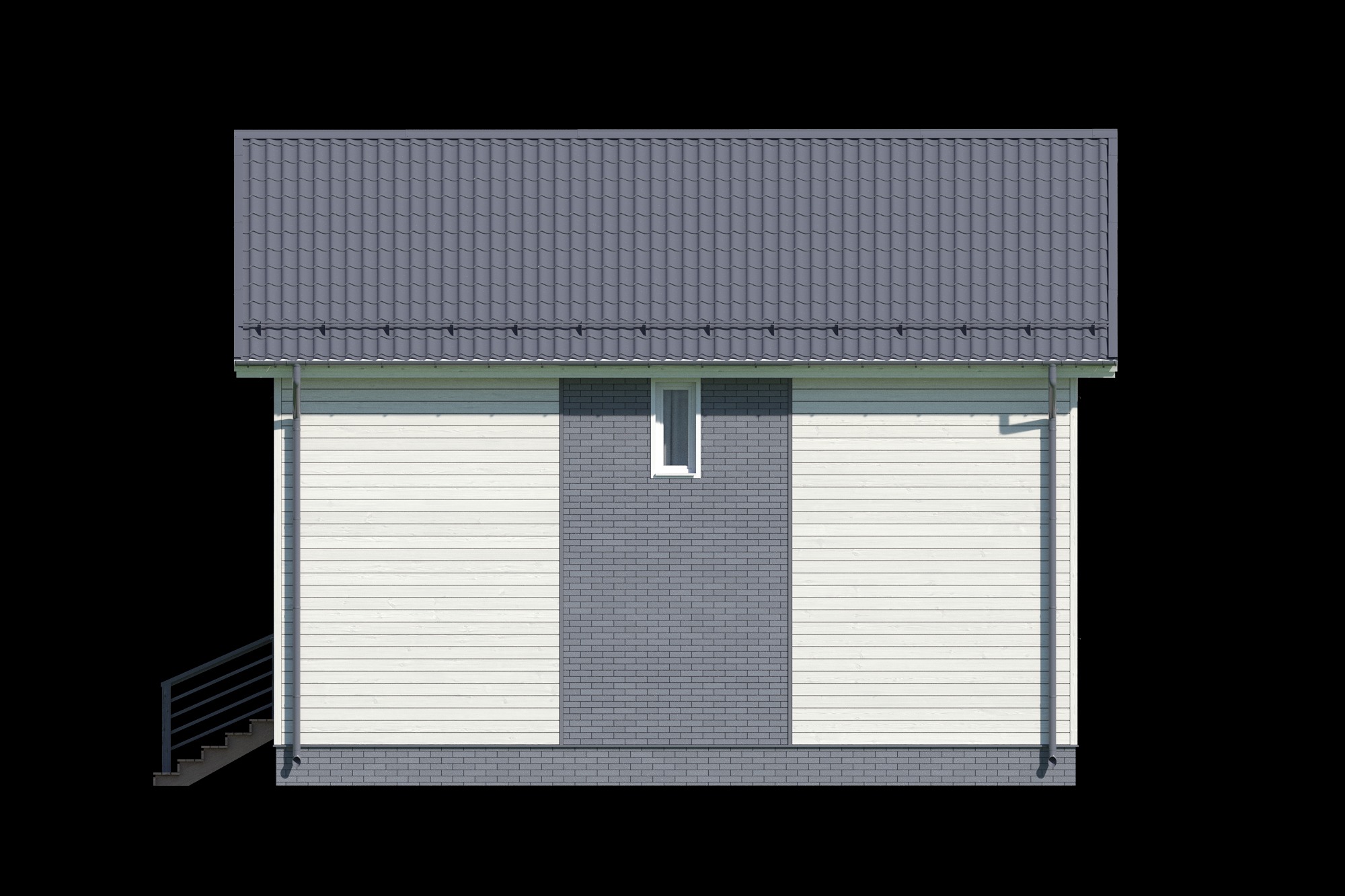 - Стропильная система, кровля: стропило – пм 38х147мм (калиброванный, сухой п/м), с повторителем стропил 20мм по ветрозащите, обрешётка 20мм. Кровля – металлочерепица «Монтеррей». Подшивка карнизов, свесов кровли – софит перфорированный, белого цвета.