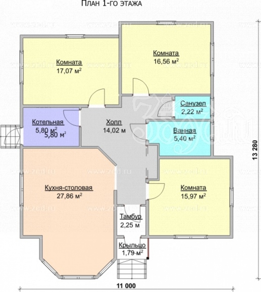Проект одноэтажного дома ДОМ 11.00×13.30