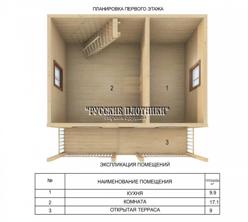 Дом, где можно устроить рабочий кабинет или мастерскую. С такими параметрами (50 м²) легко зонировать пространство. Это двухэтажная структура, которая разделяет приватные и общественные зоны. Стены из Брус хорошо держат тепло и защищают от шума. В качестве кровли использована ондулин — материал, проверенный временем.Характеристики