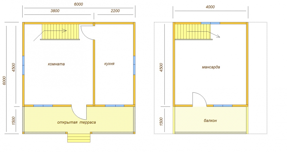Проект двухэтажного дома Дом 6х6 с мансардой (Д-3)