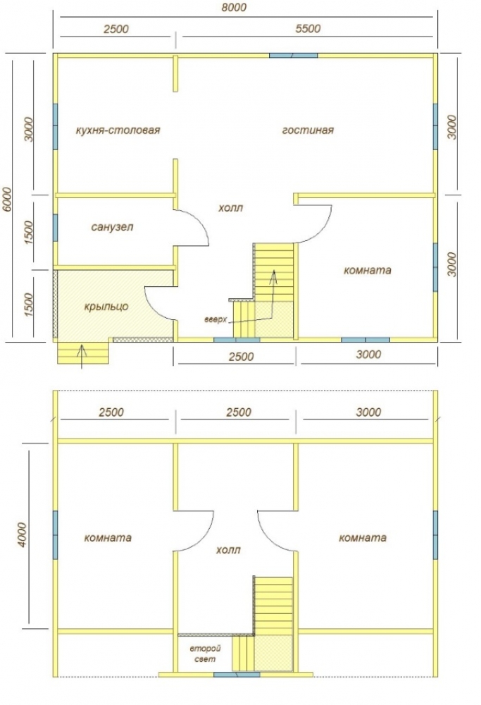 Проект двухэтажного дома Дом 6х8 с тремя фронтонами (Д-37)