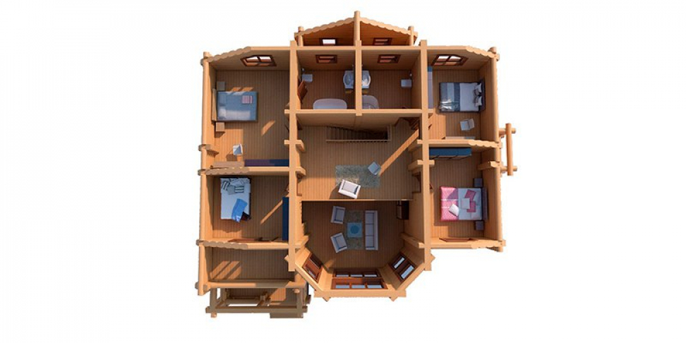 Дом, в котором домашняя библиотека оборудована специальным освещением. Уют начинается с 301 м². Материал кровли — рубероид, что добавляет зданию индивидуальность. Двухэтажная просторная планировка организует пространство максимально эффективно. Выбор бревна обусловлен его теплоизоляционными свойствами.Характеристики