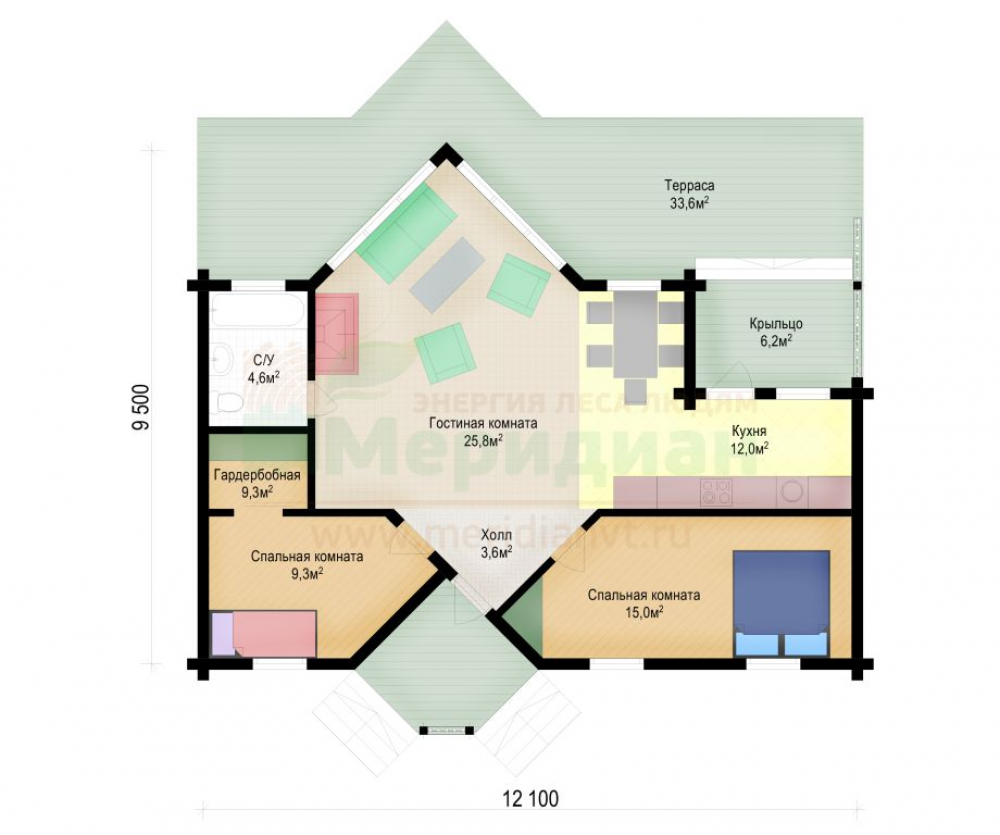 Проект одноэтажного дома ДОМ БУРЕВЕСТНИК