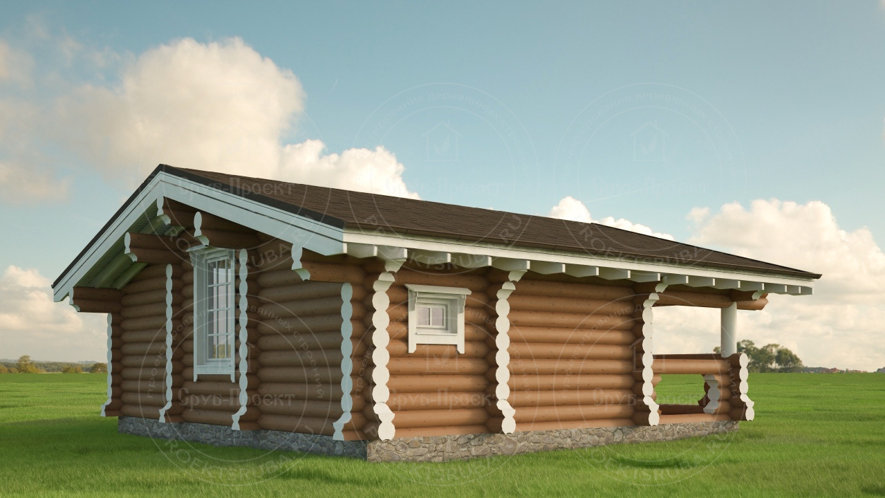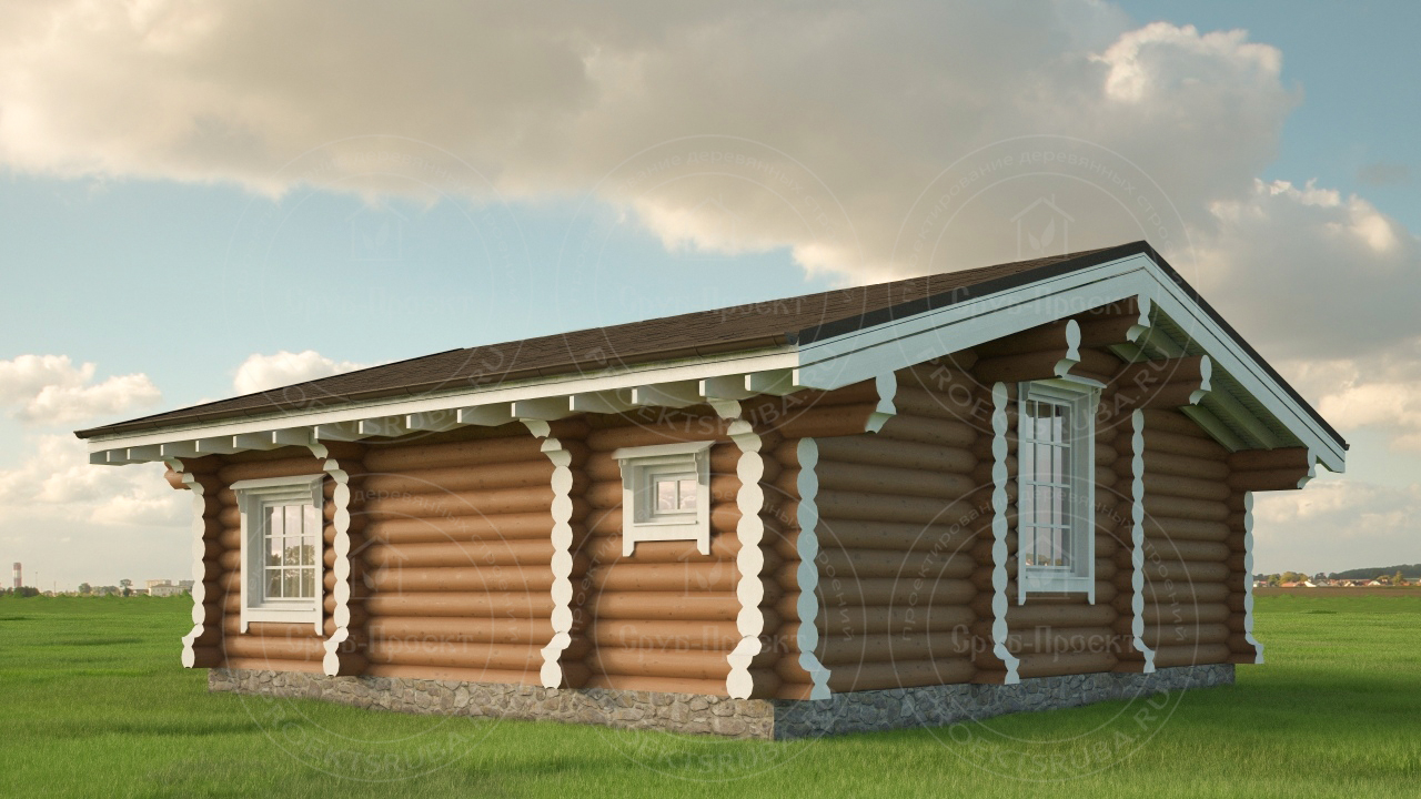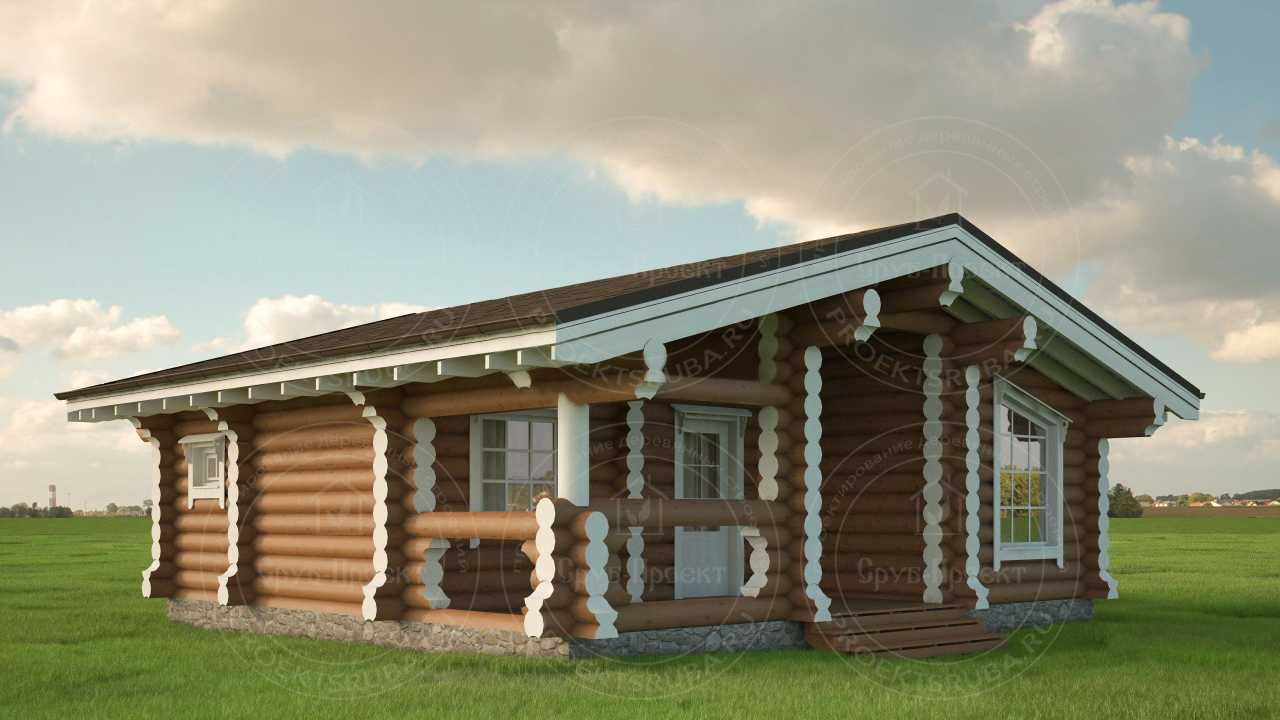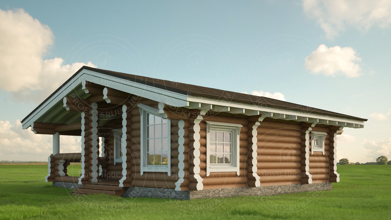 Компактный одноэтажный проект из оцилиндрованного бревна, площадь 60 м². Отличное решение для пары, небольшой семьи или как гостевой дом. Древесина создает неповторимое ощущение уюта, а простота форм — идеальна для уединенного отдыха. Надежная защита от осадков обеспечивается рубероидомХарактеристики