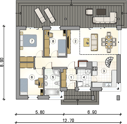 - Площадь кровли: 192,95 м2