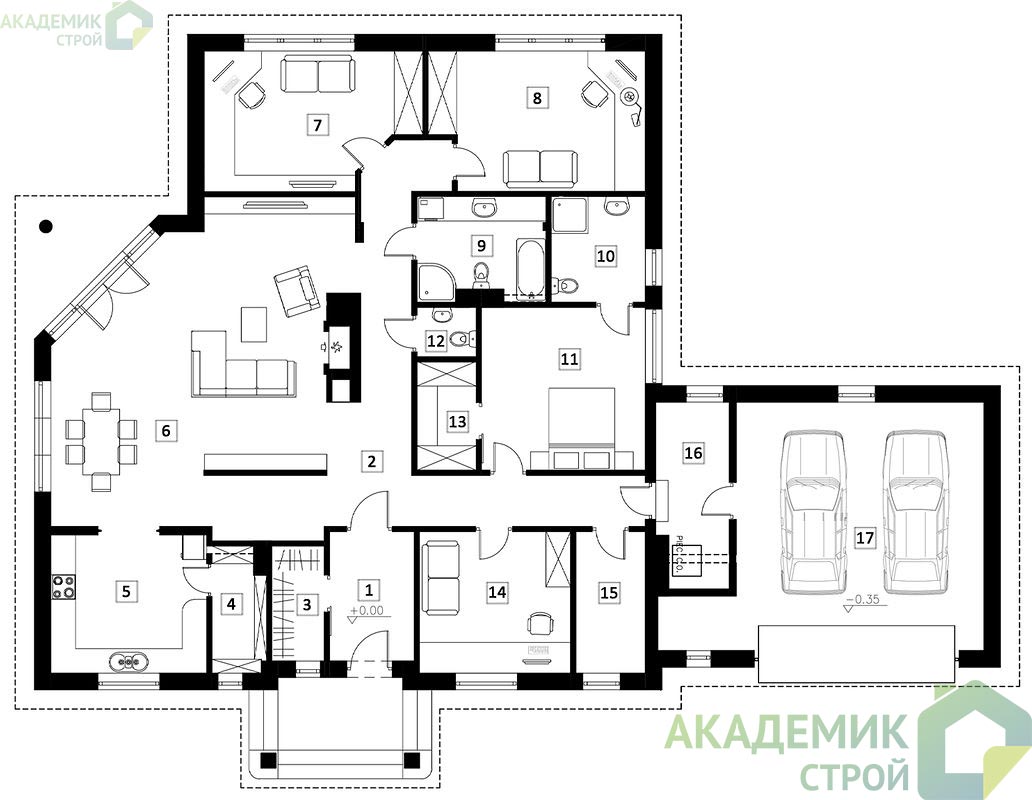 - Фундамент: Дома с ленточным фундаментом