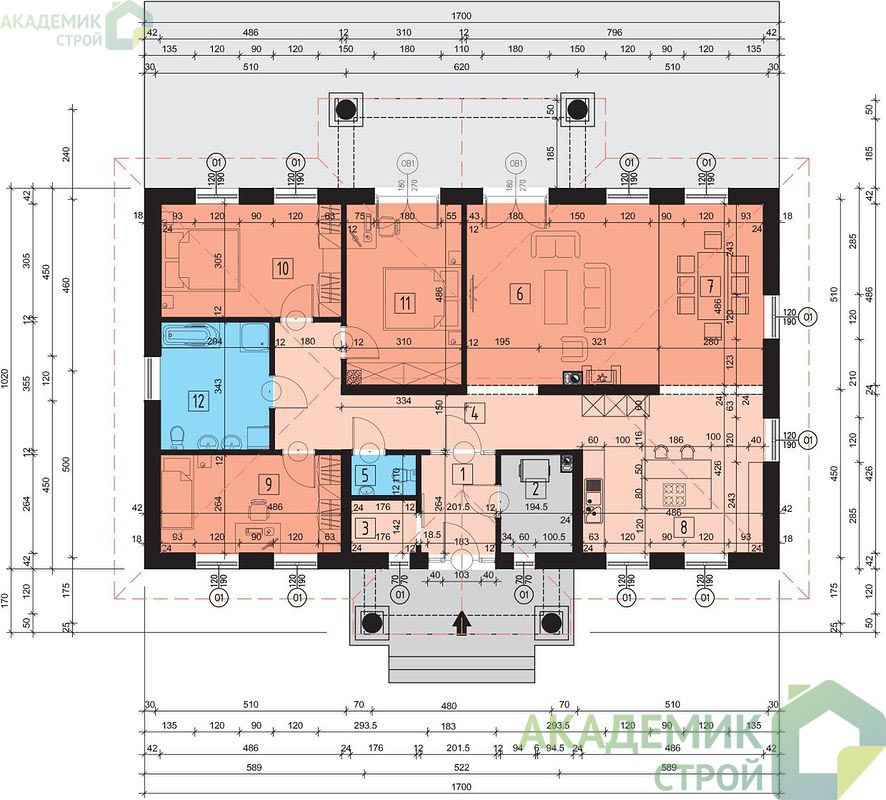 - Фундамент: Дома с ленточным фундаментом