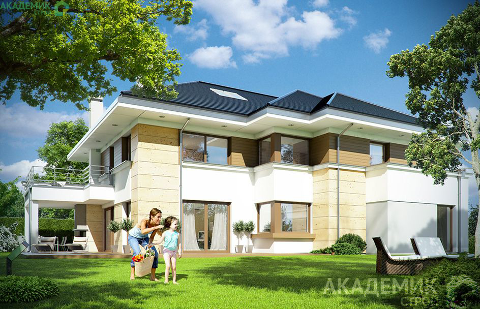 Трёхэтажный дом из газобетона площадью 440 м² рассчитан на пять комнат. Гараж на две машины обеспечивает удобство для владельцев автомобилей. Просторные помещения подойдут для организации больших гостиных и уютных спален. Такой дом станет символом уюта и статуса.Гарантии: 16 лет гарантии