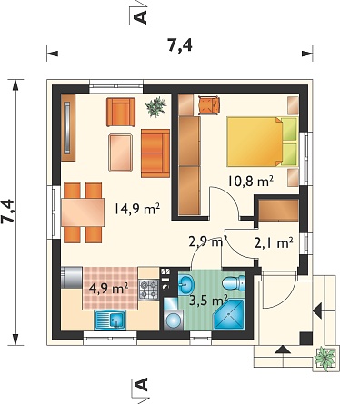 - Общая площадь: 58 м2