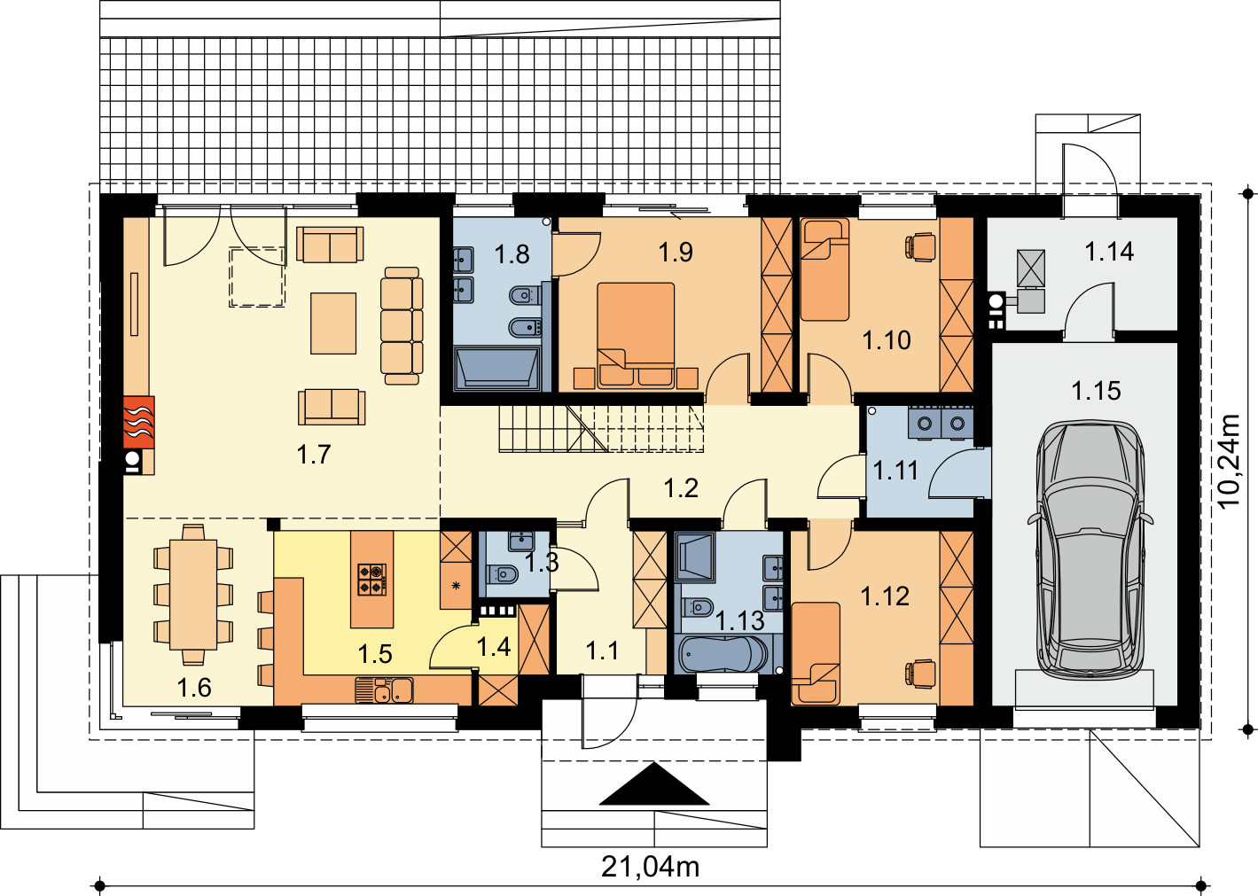 Просторный дом площадью 145 м² рассчитан на три комнаты и три санузла. Гараж на одну машину обеспечивает удобство для владельцев автомобилей. Два этажа позволяют грамотно разделить жилые и хозяйственные зоны. Такой дом станет отличным выбором для семьи среднего размераГарантии: 16 лет гарантии