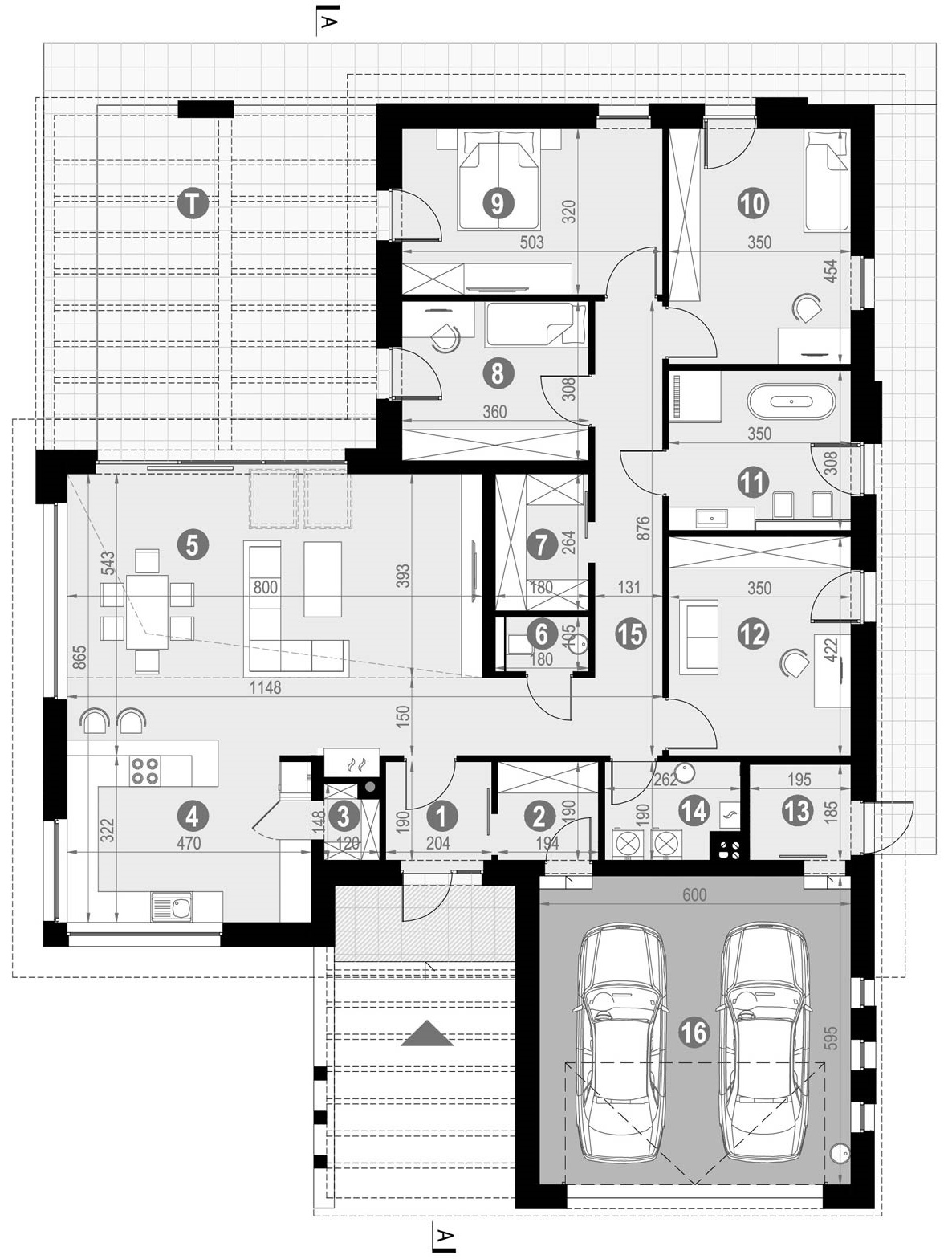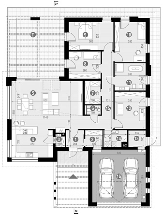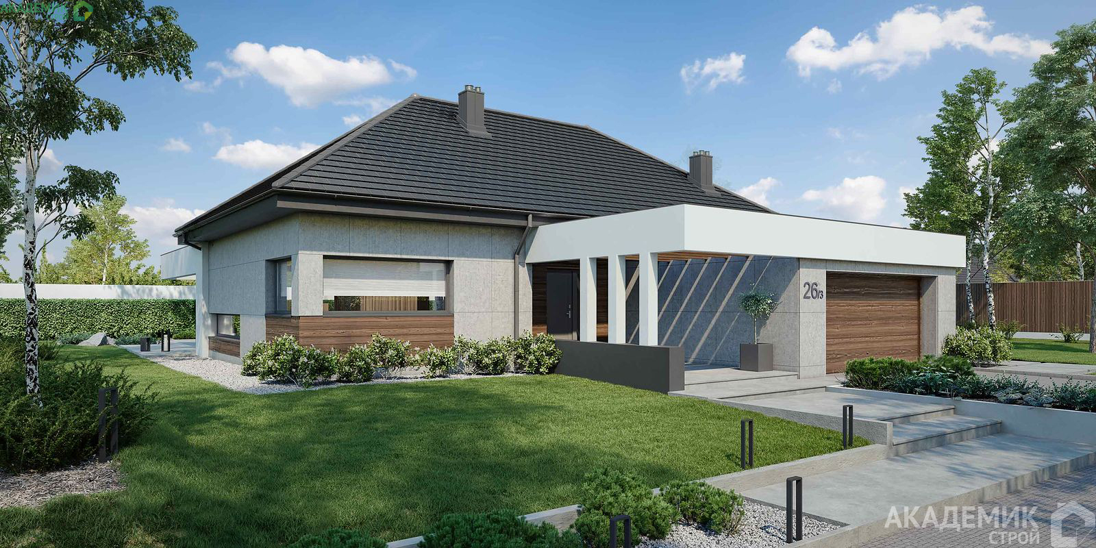 Одноэтажный дом площадью 165 м² с четырьмя комнатами и двумя санузлами станет отличным выбором для семьи из 4-5 человек. Гараж на две машины добавляет практичности для автомобилистов. Просторная гостиная и кухня делают дом уютным и функциональным. Современные материалы обеспечивают долговечность и комфорт.Гарантии: 16 лет гарантии