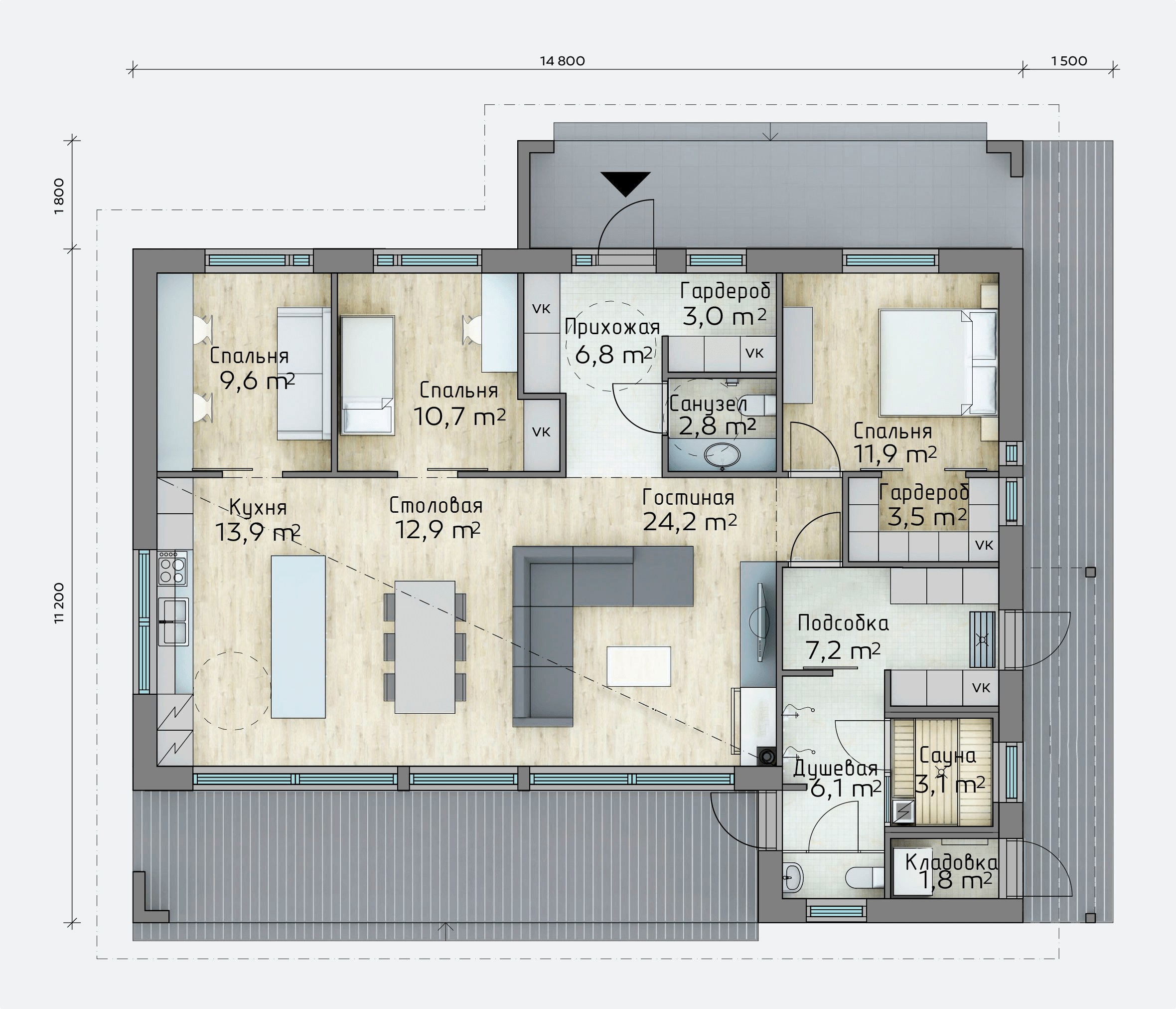 Пространство света, организованное для максимального естественного освещения.Функциональное жильё с гармонично спланированными интерьерами. Дом с 126 м² даёт ощущение гармонии. 92 м² — оптимальный метраж для комфорта и уединения. 2 санузла — отличное решение для удобства всех членов семьи. Крыша из металлочерепица подчёркивает современный облик дома. Капитальный фундамент гарантирует долгий срок службы дома. Проект включает 3 спальни — удобно для семьи.Гарантии: 16 лет гарантии