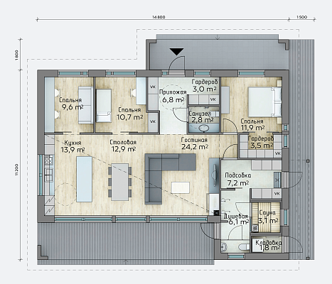 - Общая площадь: 126 м2