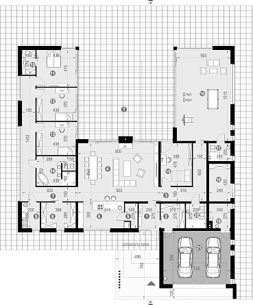 Впечатляющий одноэтажный дом площадью 447 м² рассчитан на пять комнат и три санузла. Гараж на две машины добавляет практичности проекту. Просторные помещения позволяют реализовать любые дизайнерские идеи, а большая кухня-гостиная станет центром семейной жизни. Такой дом подойдёт для большой семьи, ценящей масштаб и комфорт.Гарантии: 16 лет гарантии