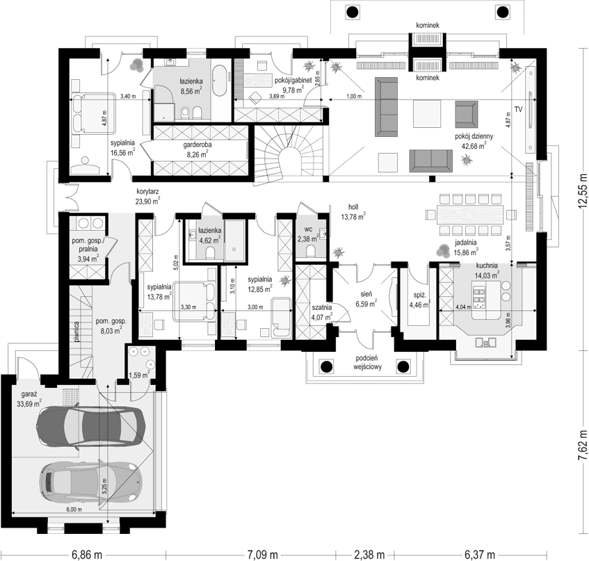 Большой дом площадью 259 м² станет отличным выбором для большой семьи. В проекте предусмотрено пять комнат и четыре санузла, что позволяет каждому иметь личное пространство. Два этажа обеспечивают функциональное зонирование. Гараж на две машины добавляет удобства для владельцев автомобилейГарантии: 16 лет гарантии