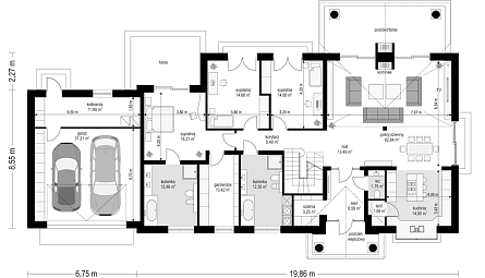 Двухэтажный дом площадью 173 м² рассчитан на три комнаты и три санузла, что удобно для семьи из 3-4 человек. Гараж на две машины добавляет практичности для автомобилистов. Просторная гостиная и кухня создают уютное пространство для семейных вечеров. Дом выполнен из газобетона и металлочерепицы.Гарантии: 16 лет гарантии