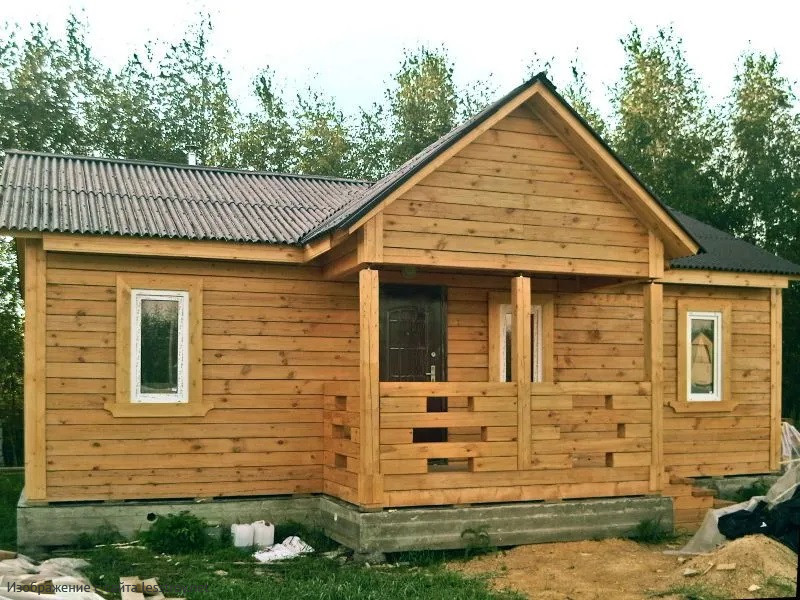 Компактный бревенчатый дом площадью 63 м² с двумя спальнями создает теплую атмосферу загородного отдыха. Ондулин на кровле дополняет его деревенский шарм.Характеристики