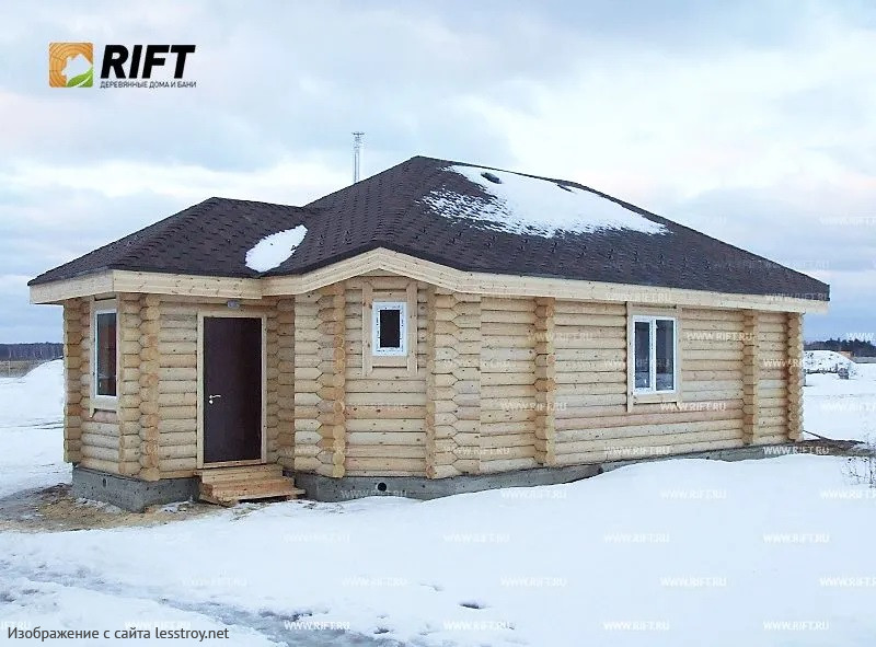 Миниатюрный дом из бревна площадью 96 м² с двумя спальнями идеален для дачного отдыха. Ондулиновая кровля делает его практичным.Характеристики
