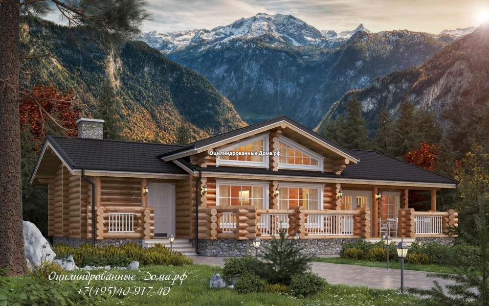Проект одноэтажного дома Дом из бревна одноэтажный в стиле Шале -АЛЬПЫ - 155м2(11,5Х15,7)