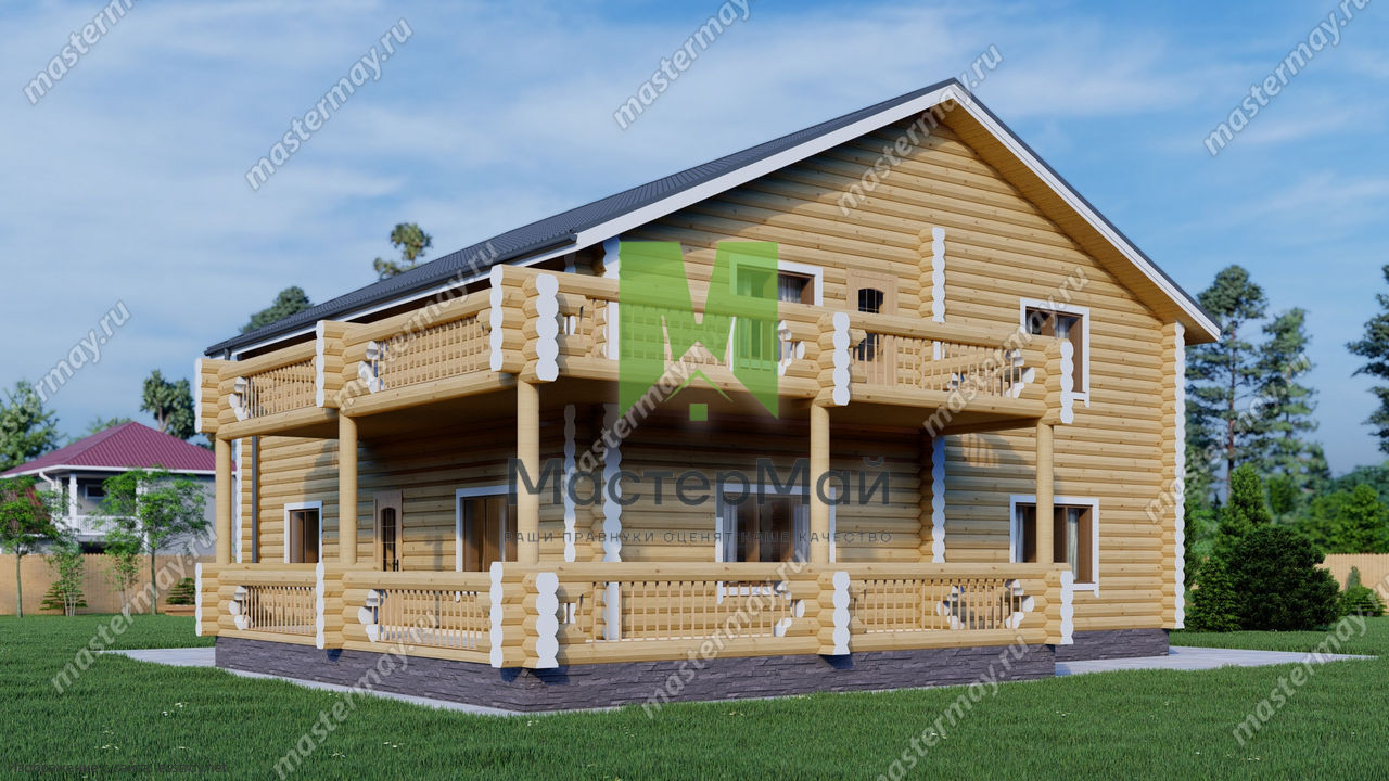 Проект двухэтажного дома Дом из бревна по проекту «Гармония»