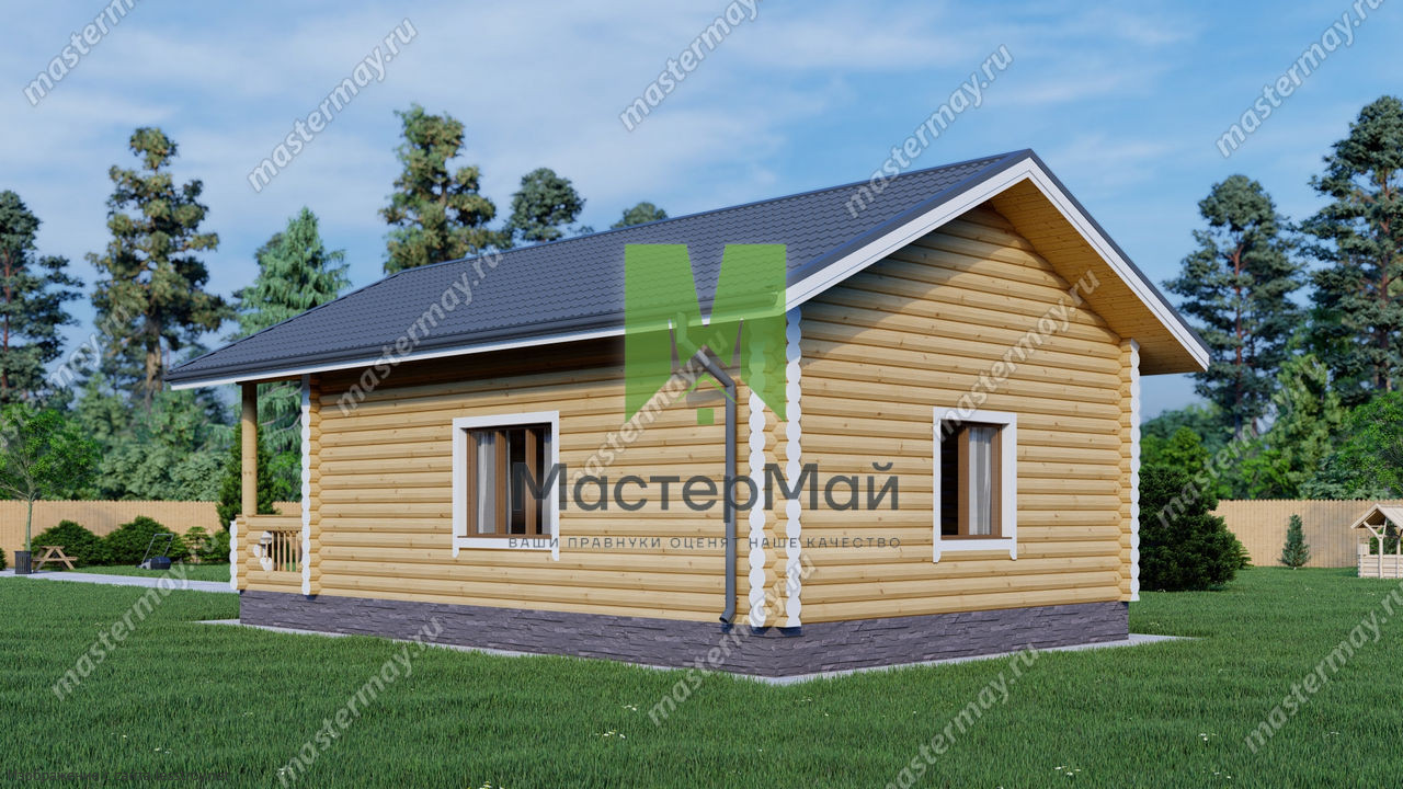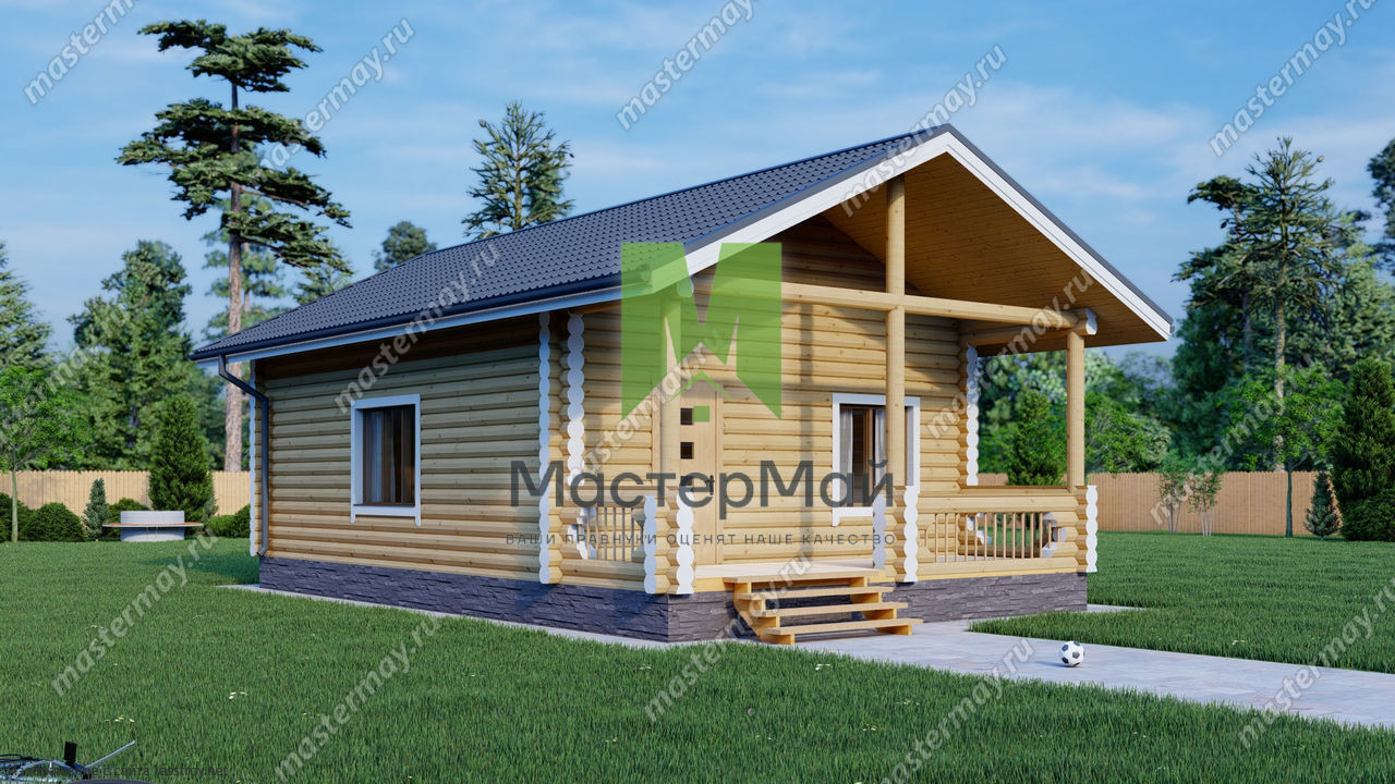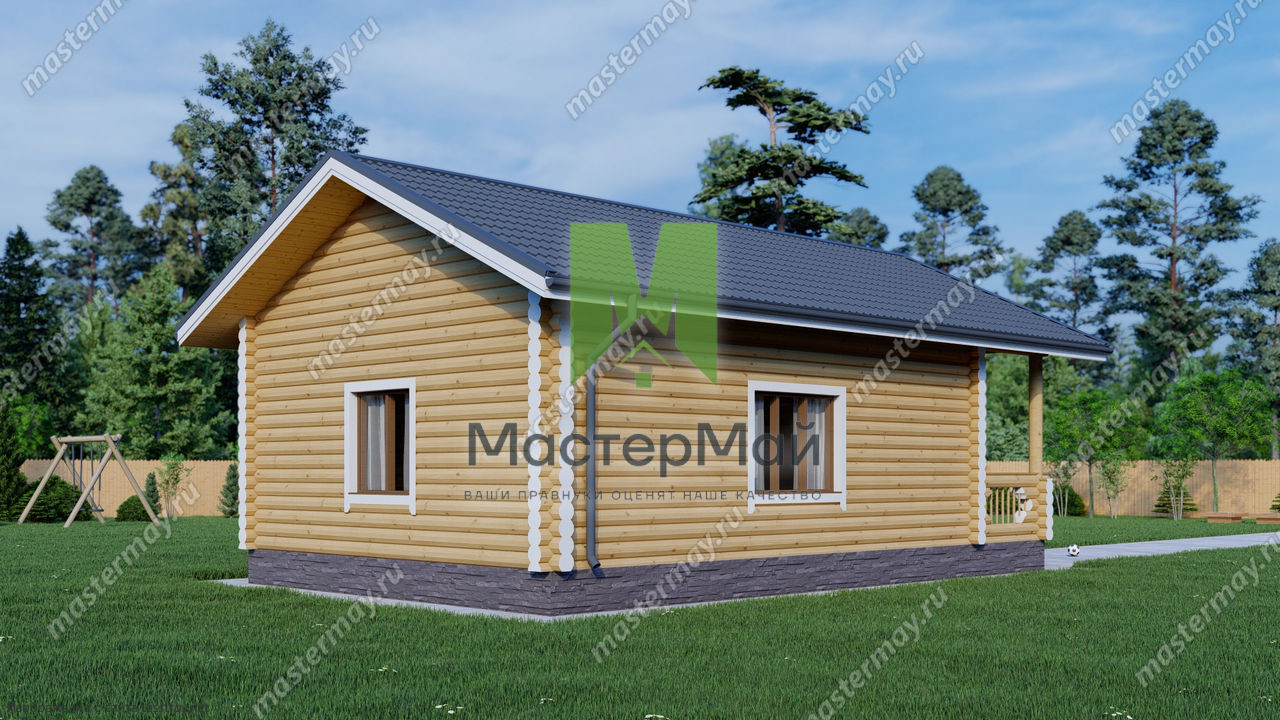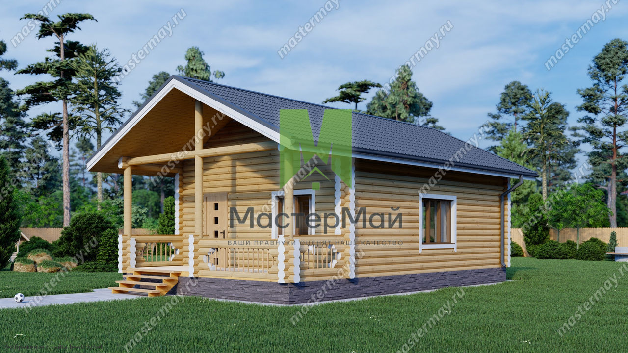 Проект одноэтажного дома Дом из бревна по проекту «Лотос»