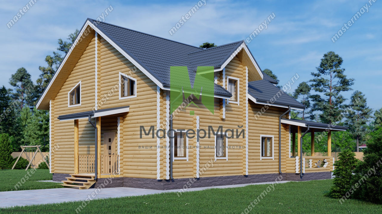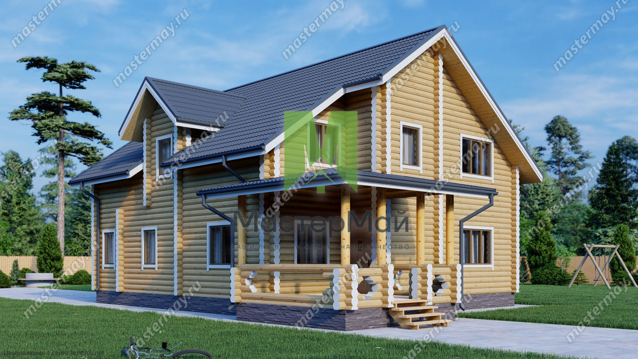 Проект двухэтажного дома Дом из бревна по проекту «Сибирь»