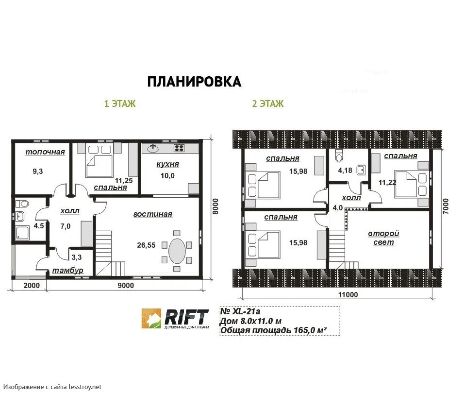 Просторный бревенчатый дом площадью 126 м² с четырьмя спальнями создает атмосферу уюта. Ондулин на кровле гармонично сочетается с деревом.Характеристики