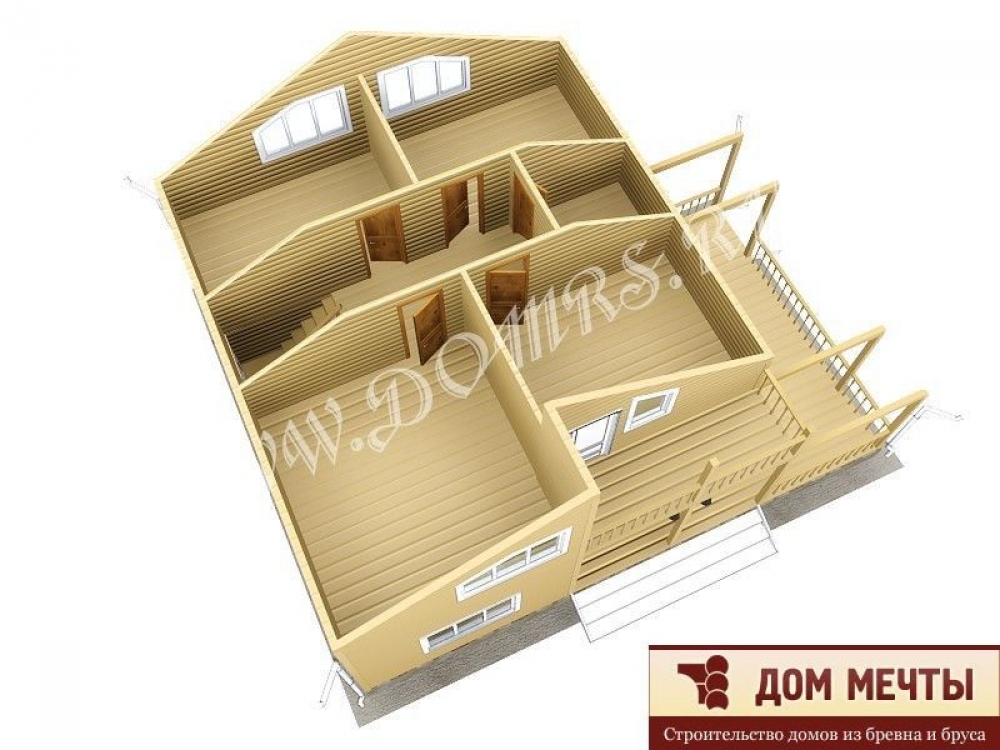 Проект двухэтажного дома Дом из бруса 10х12 в полтора этажа | ДМ-53
