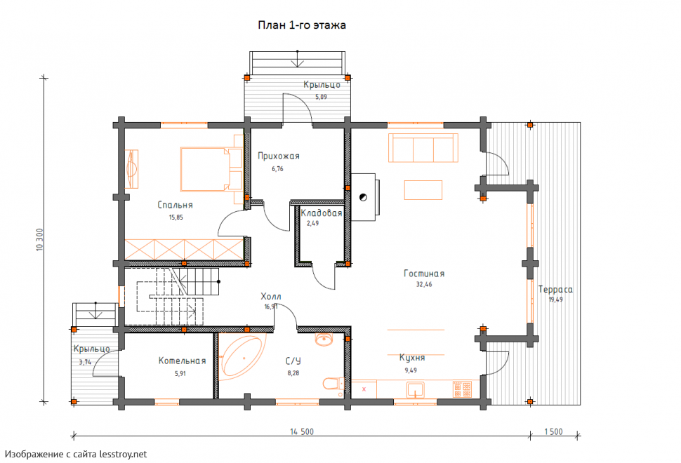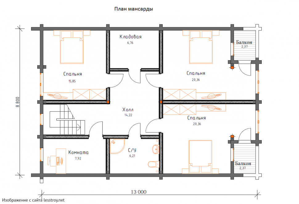 Проект двухэтажного дома Дом из бруса 10х14 ДБ-53