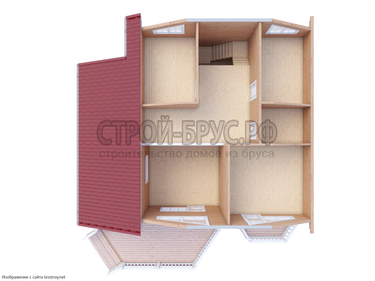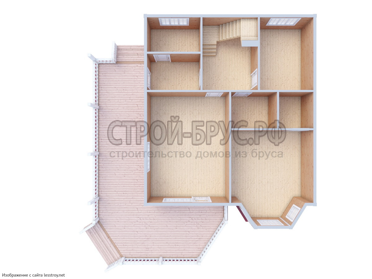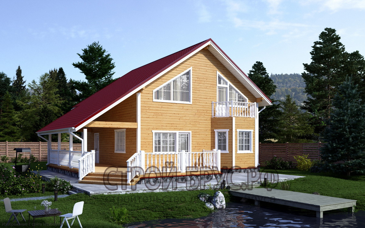 Проект двухэтажного дома ДОМ ИЗ БРУСА 13Х9 С БОЛЬШОЙ ТЕРРАСОЙ \ №123